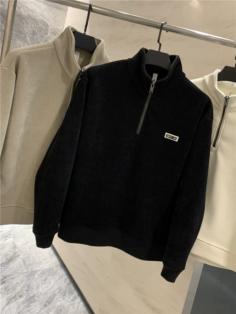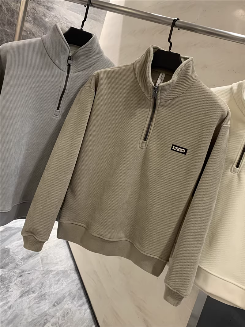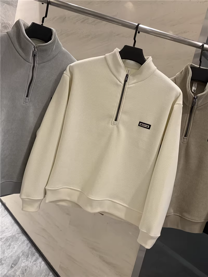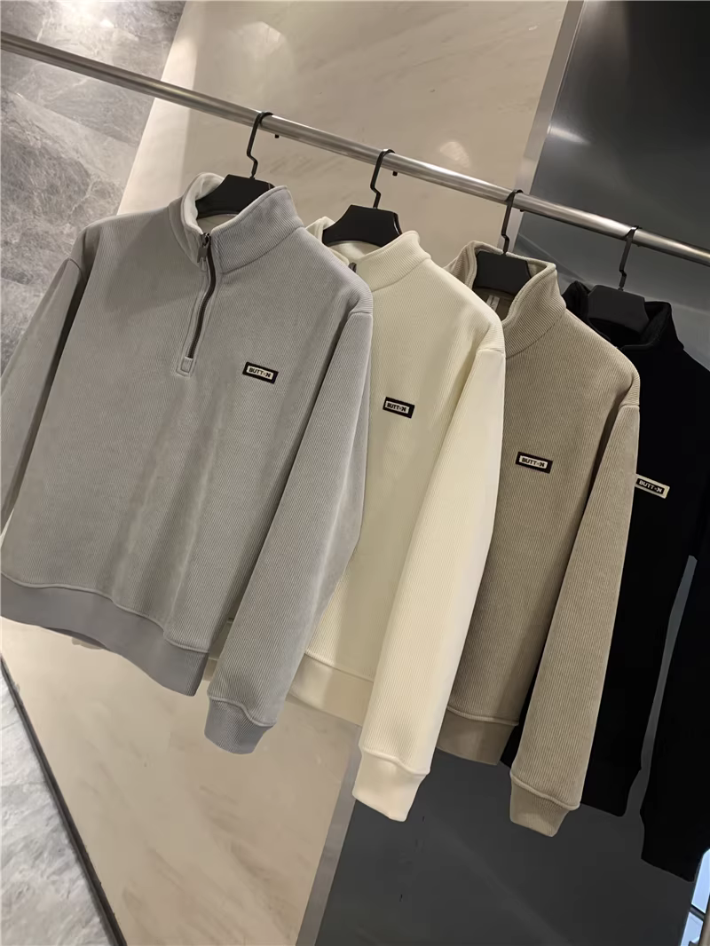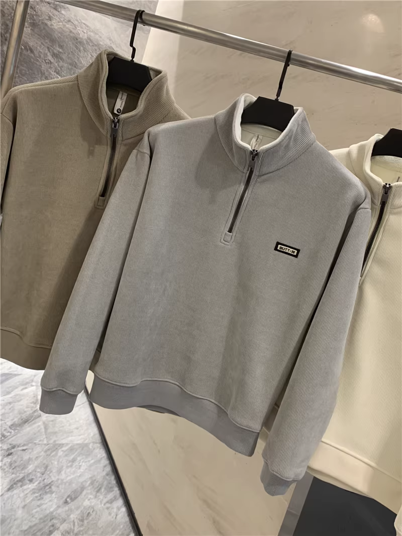 Đơn đặt hàng nhà máy Don Quixote ODM! Chống gió, lót lông cừu! Áo nỉ nam nửa khóa kéo, lót lông cừu, mùa thu đông.