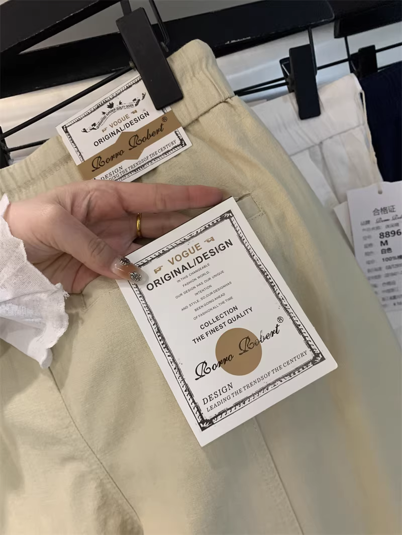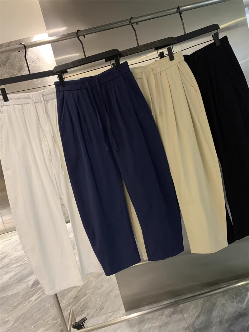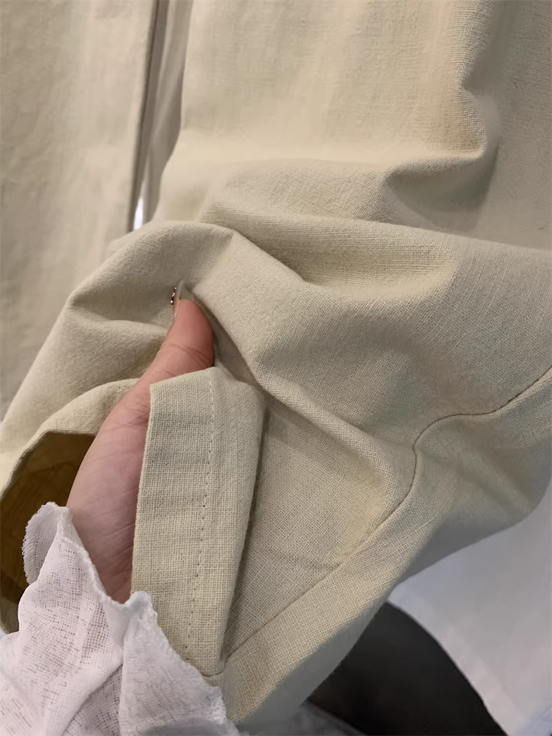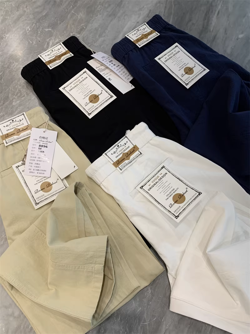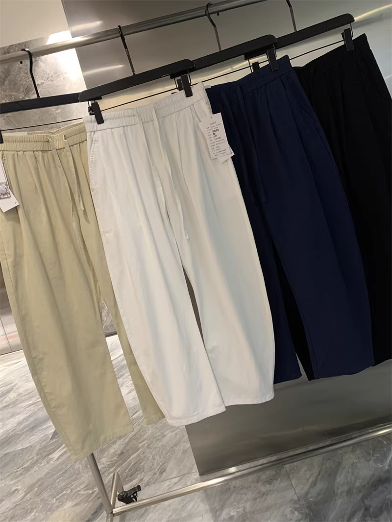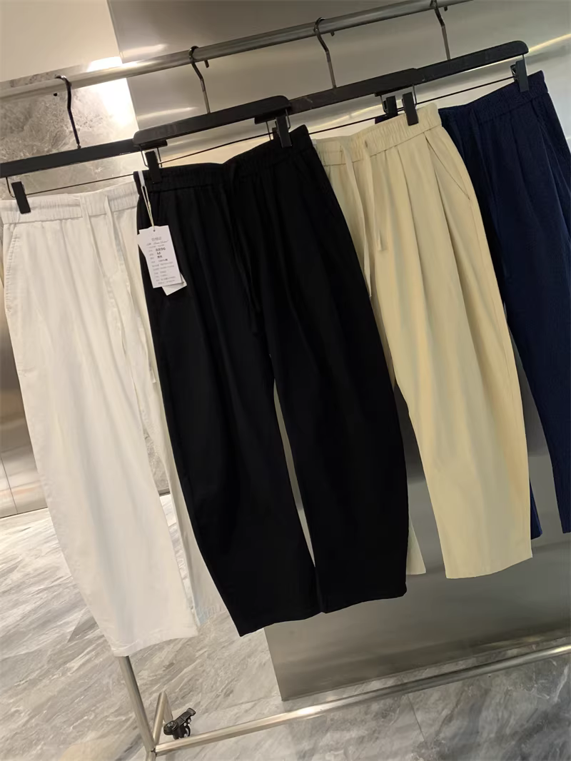 - Don Quixote 100% cotton + kiểu quần lưỡi liềm! Quần ống rộng dáng rộng, lưng thun co giãn, mềm mại và thoáng khí cho nam mùa xuân/hè