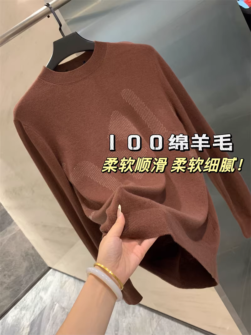 Don Quixote 100% len cừu! Giữ nhiệt, mềm mại và thân thiện với làn da! Áo len dệt kim cổ tròn thông thường dành cho nam mùa thu đông.