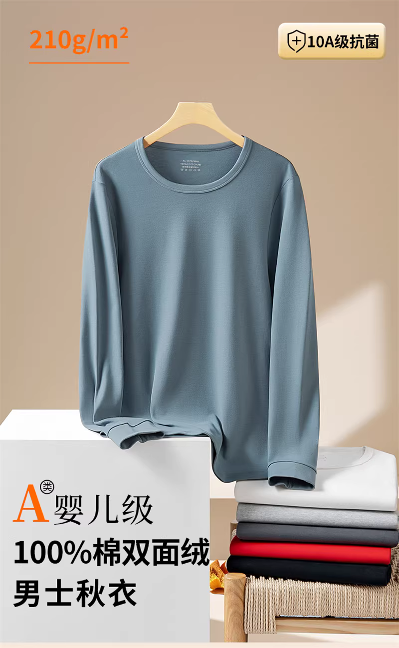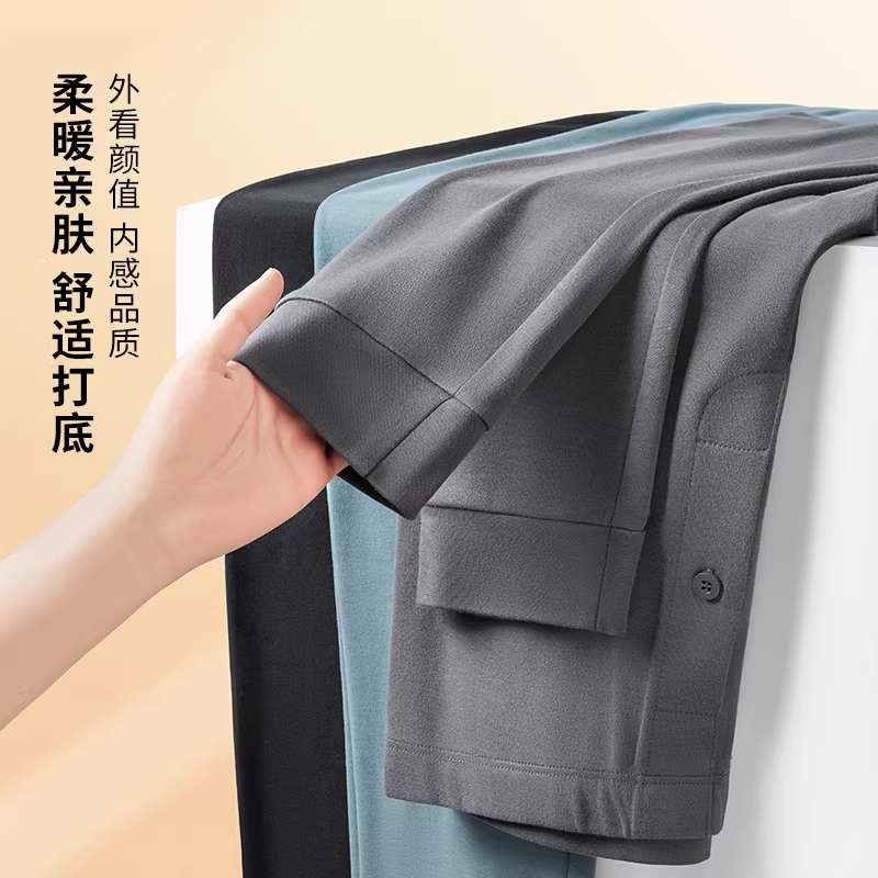 - Don Quixote 10A kháng khuẩn! 100% cotton! Bộ áo + quần nam màu trơn mùa thu đông ấm áp