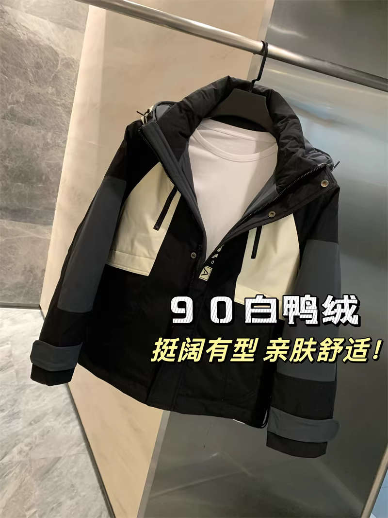 Don Quixote 90 lông vịt trắng! Áo khoác có mũ trùm đầu chống gió và chống thấm nước ngoài trời màu sắc tương phản dành cho cả nam và nữ mùa đông.