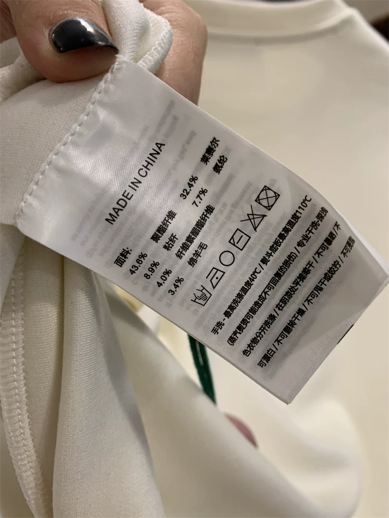 43.6%聚酯纤维+32.4%莱赛尔+8.9%粘纤+7.7%氨纶+4%纤维素醋酯纤维+3.4%绵羊毛