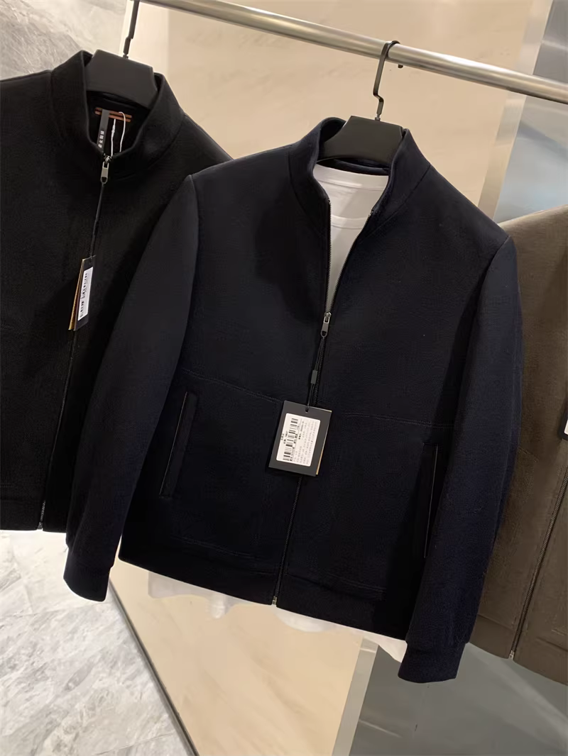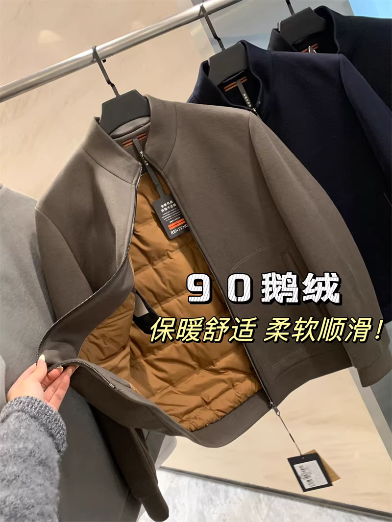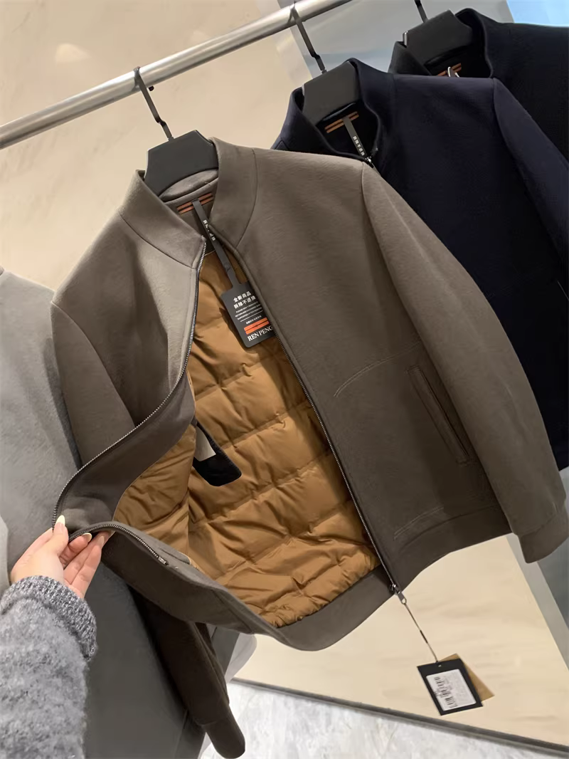 Don Quixote Áo khoác cổ đứng pha trộn 90% lông ngỗng + len! Áo khoác cổ đứng thông thường dành cho doanh nhân cao cấp dành cho nam giới vào mùa thu đông.