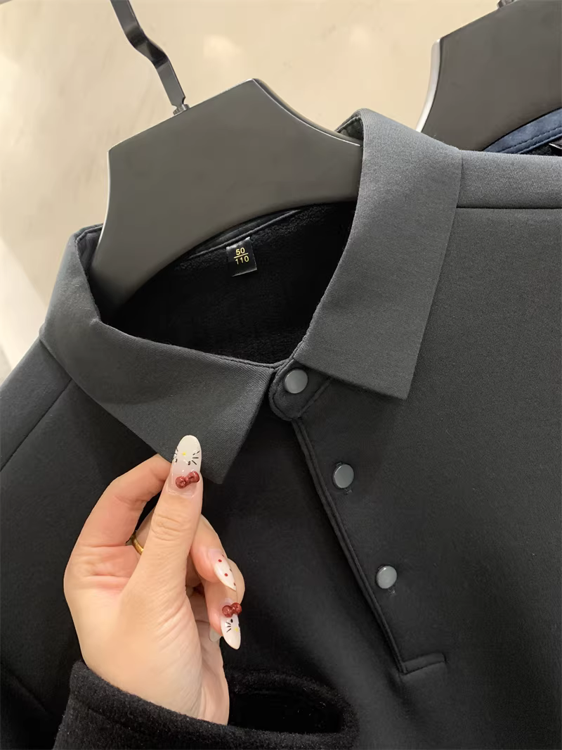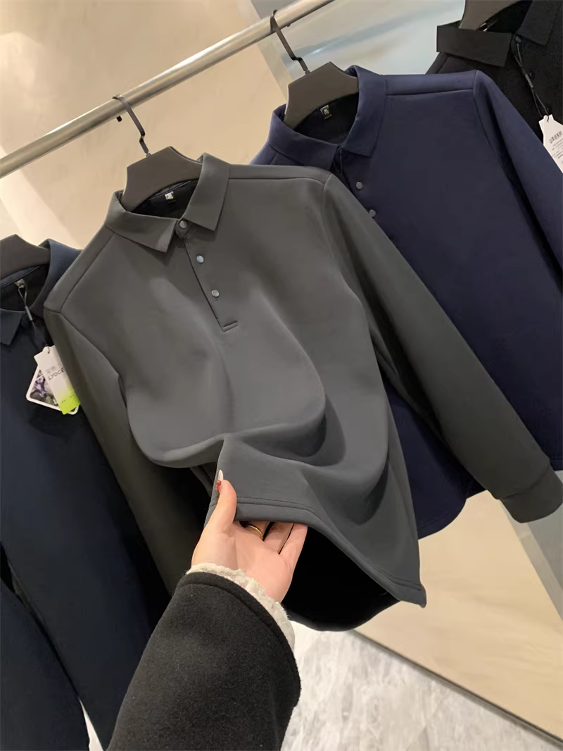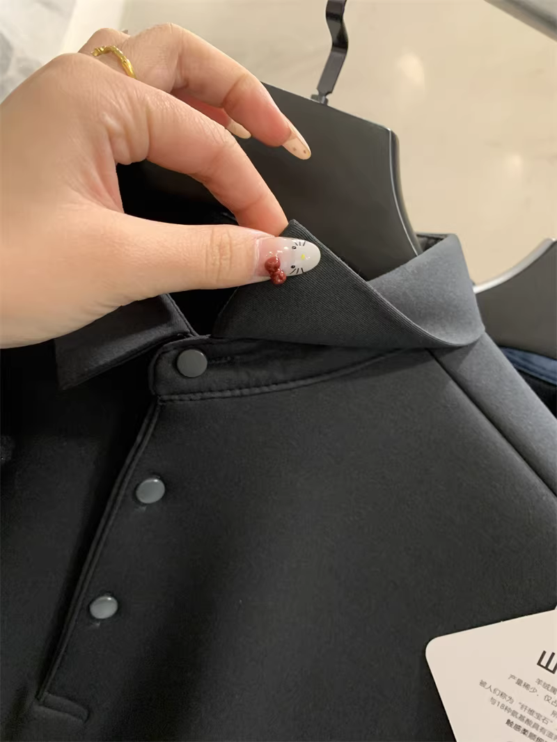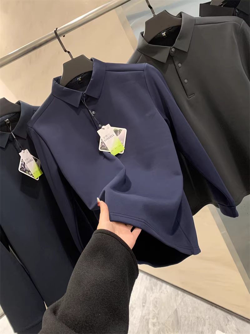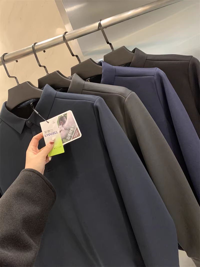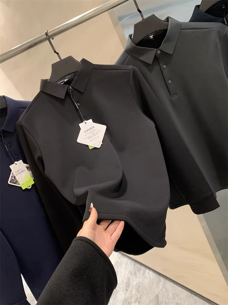 Don Quixote Áo thun polo dài tay chất liệu tơ tằm + cashmere! Áo lót giữ ấm dày dặn mùa thu đông dành cho nam