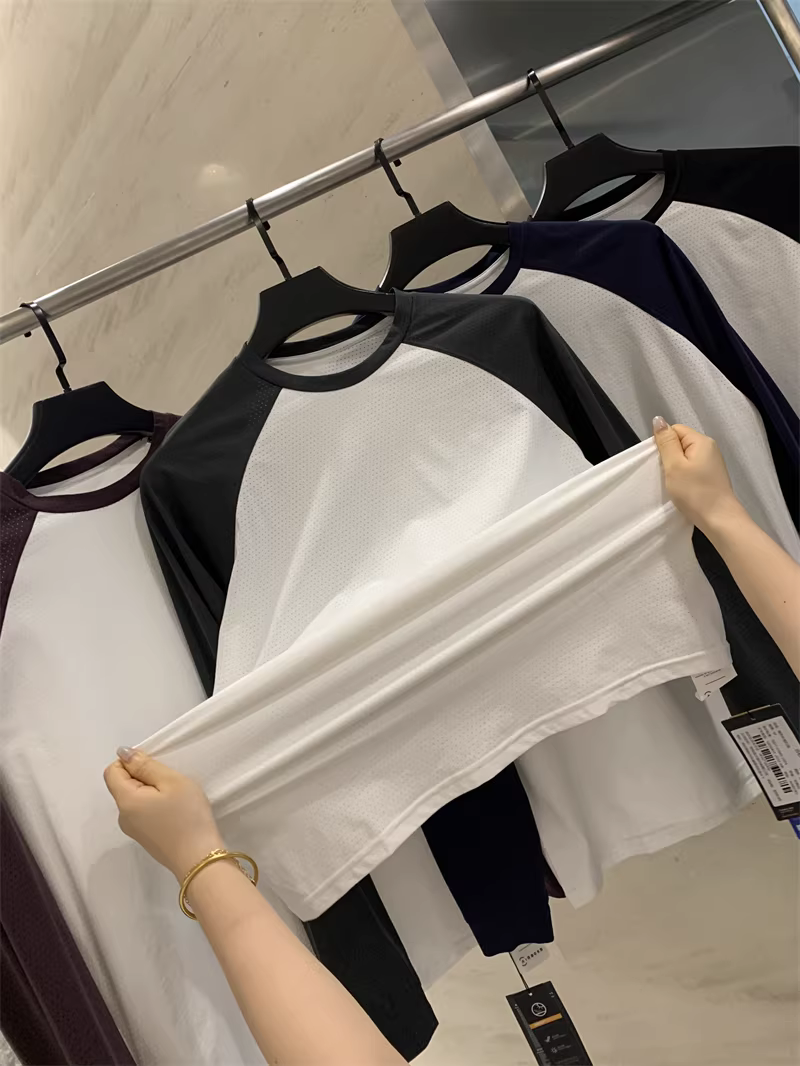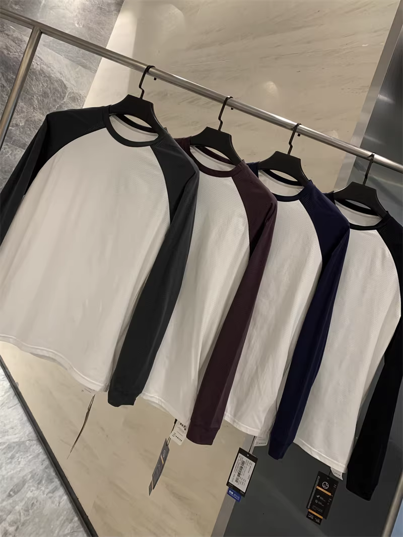 - Don Quixote Áo thun thể thao nam phối màu kiểu Mỹ! Áo thun thể thao nam chất liệu lưới thoáng khí, áo thun dài tay thoải mái và thoáng khí.