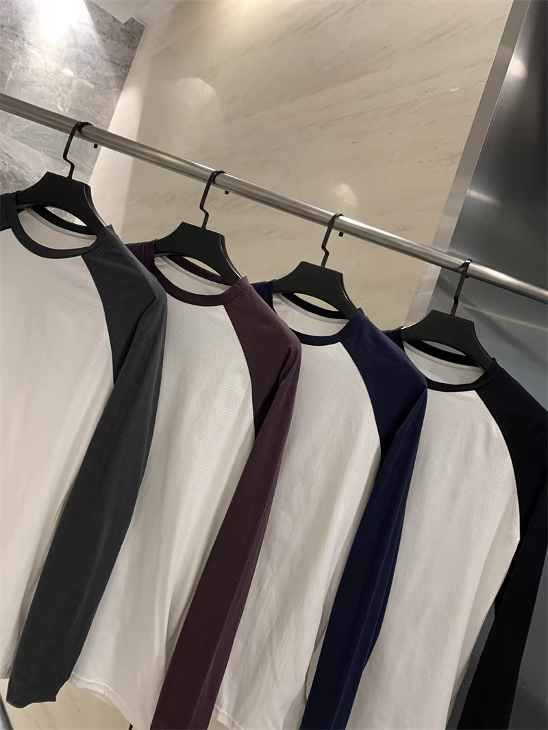 Don Quixote Áo thun thể thao nam phối màu kiểu Mỹ! Áo thun thể thao nam chất liệu lưới thoáng khí, áo thun dài tay thoải mái và thoáng khí.