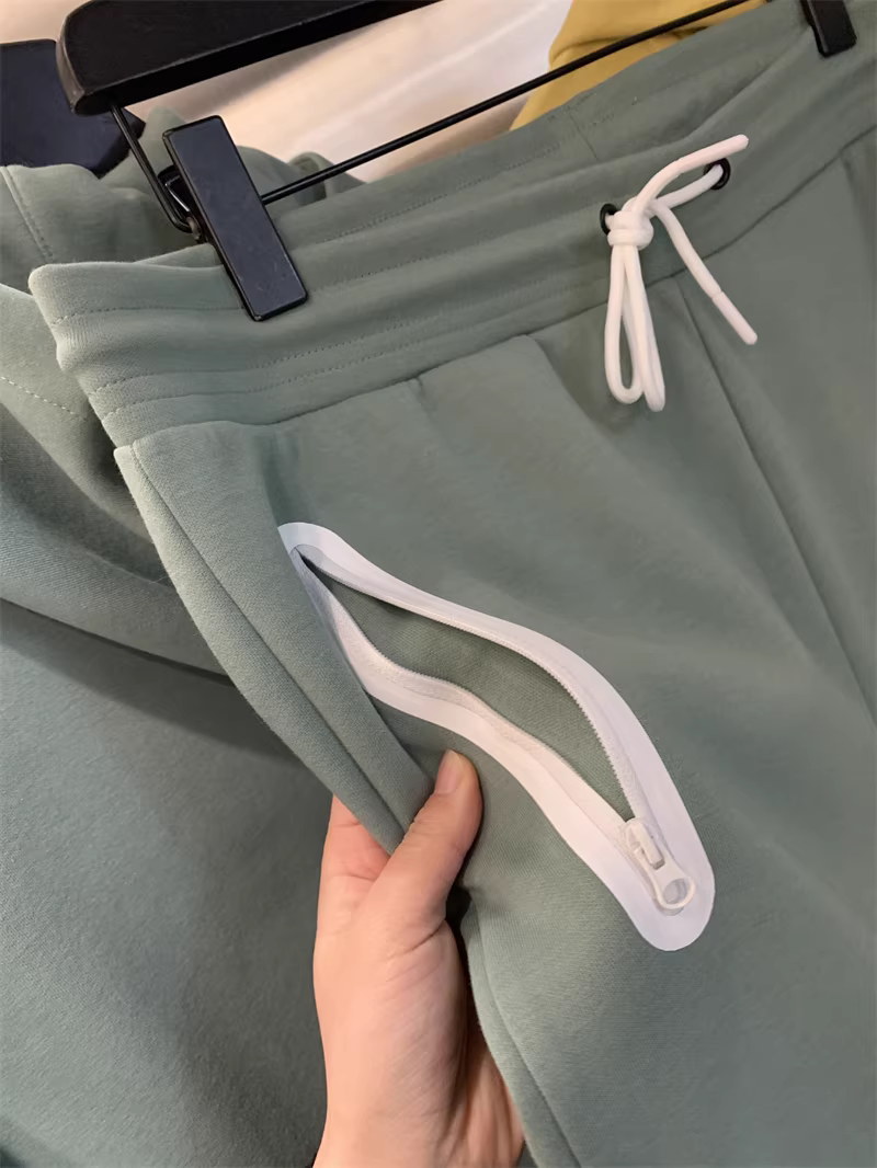 裤子采用抽绳松紧腰 宽松收口运动裤型