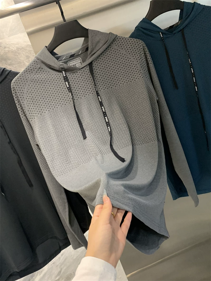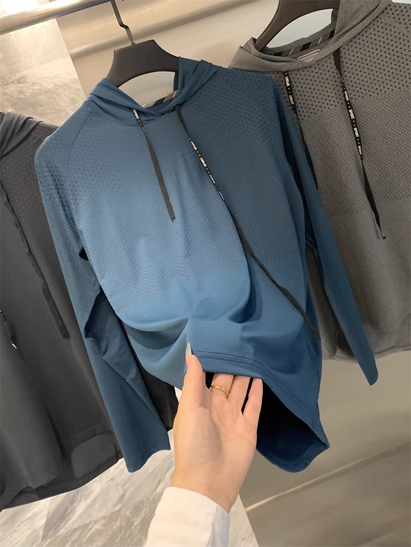 Don Quixote Brick Industry Chống ẩm ngoài trời, nhanh khô, thoáng khí! Áo thun dài tay có mũ trùm đầu thể thao và giải trí mùa xuân hè hợp thời trang