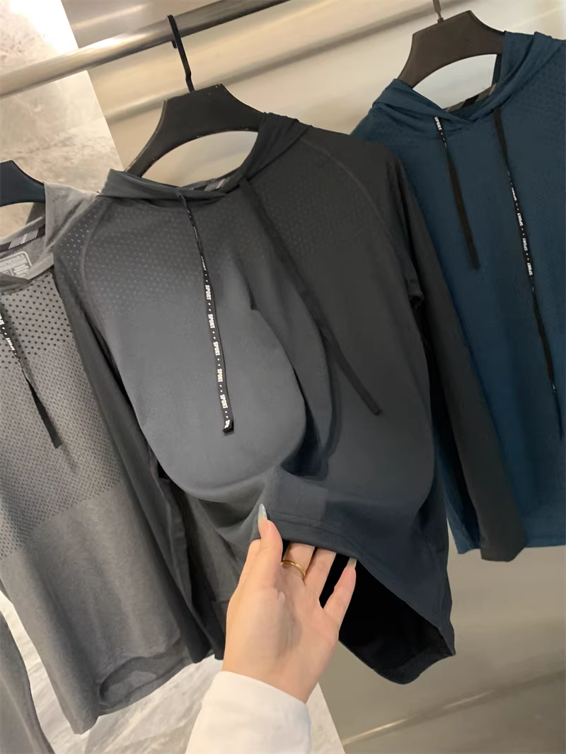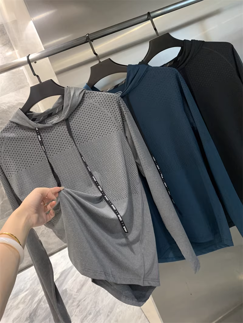 - Don Quixote Brick Industry Chống ẩm ngoài trời, nhanh khô, thoáng khí! Áo thun dài tay có mũ trùm đầu thể thao và giải trí mùa xuân hè hợp thời trang