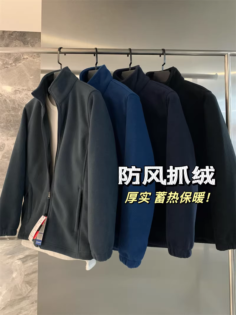 Don Quixote Brick Industry Outdoor Fleece! Áo khoác có cổ đứng giữ nhiệt, giữ ấm cho cặp đôi mùa thu đông, hợp thời trang.