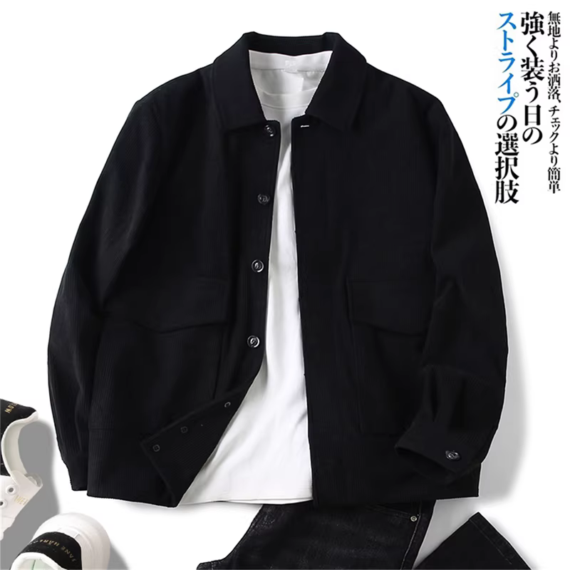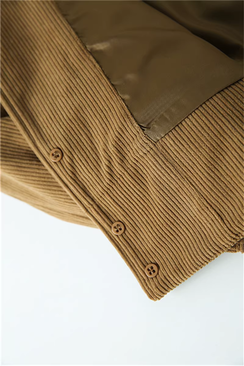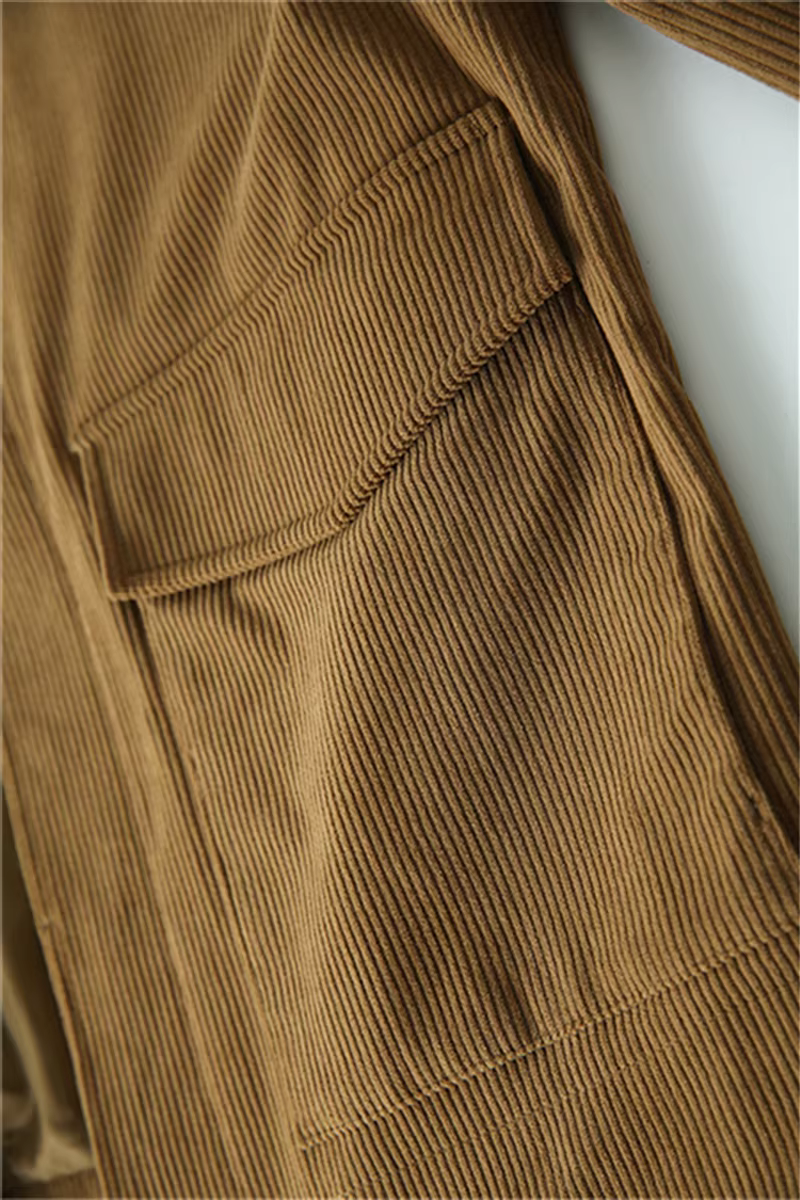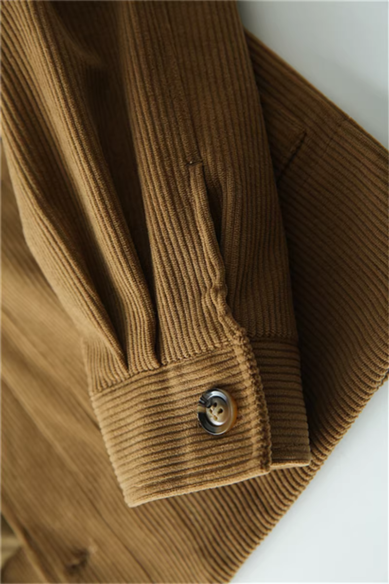 Don Quixote cá nhân rất khuyến khích! Áo khoác nhung kẻ sọc tinh tế, kiểu dáng thu đông mới, áo khoác công sở có ve áo, hợp thời trang.