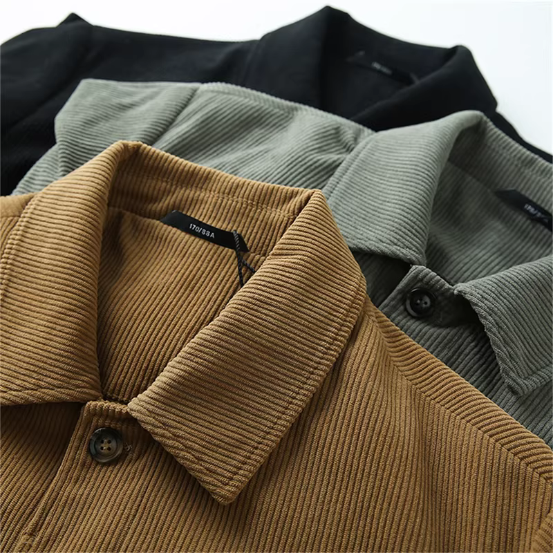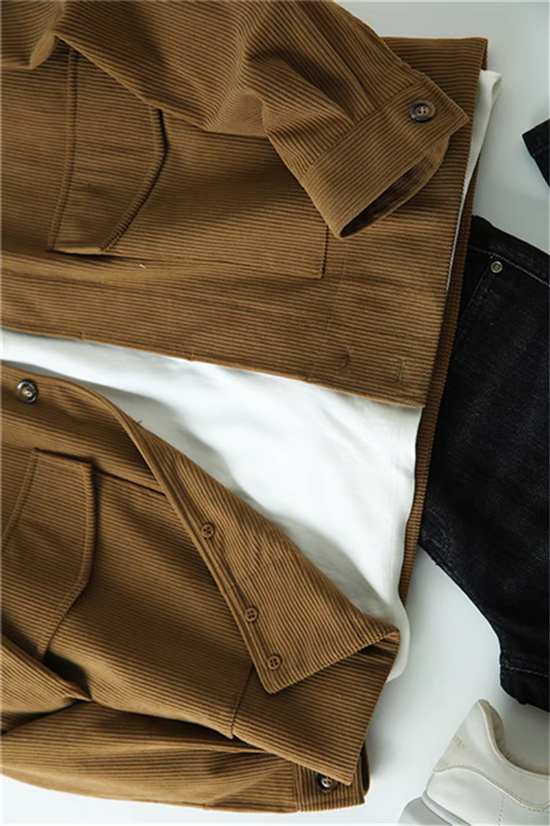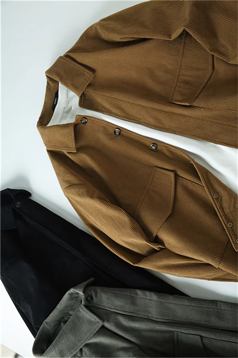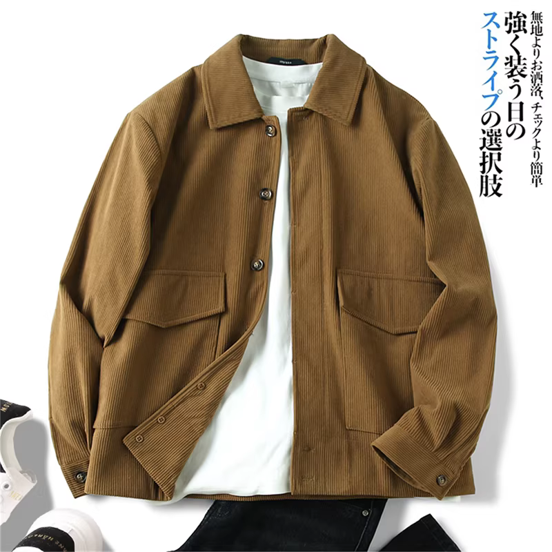 Don Quixote cá nhân rất khuyến khích! Áo khoác nhung kẻ sọc tinh tế, kiểu dáng thu đông mới, áo khoác công sở có ve áo, hợp thời trang.