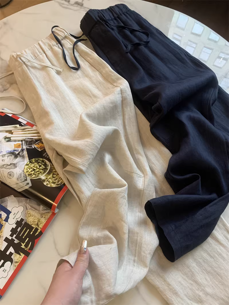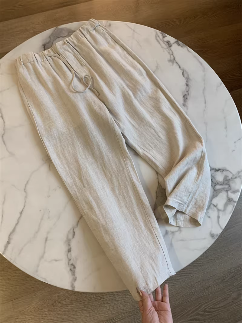 Don Quixote, cảm giác của mùa hè! 100% vải lanh! Quần vải lanh dáng thẳng lưng thun co giãn mùa hè dành cho nam.