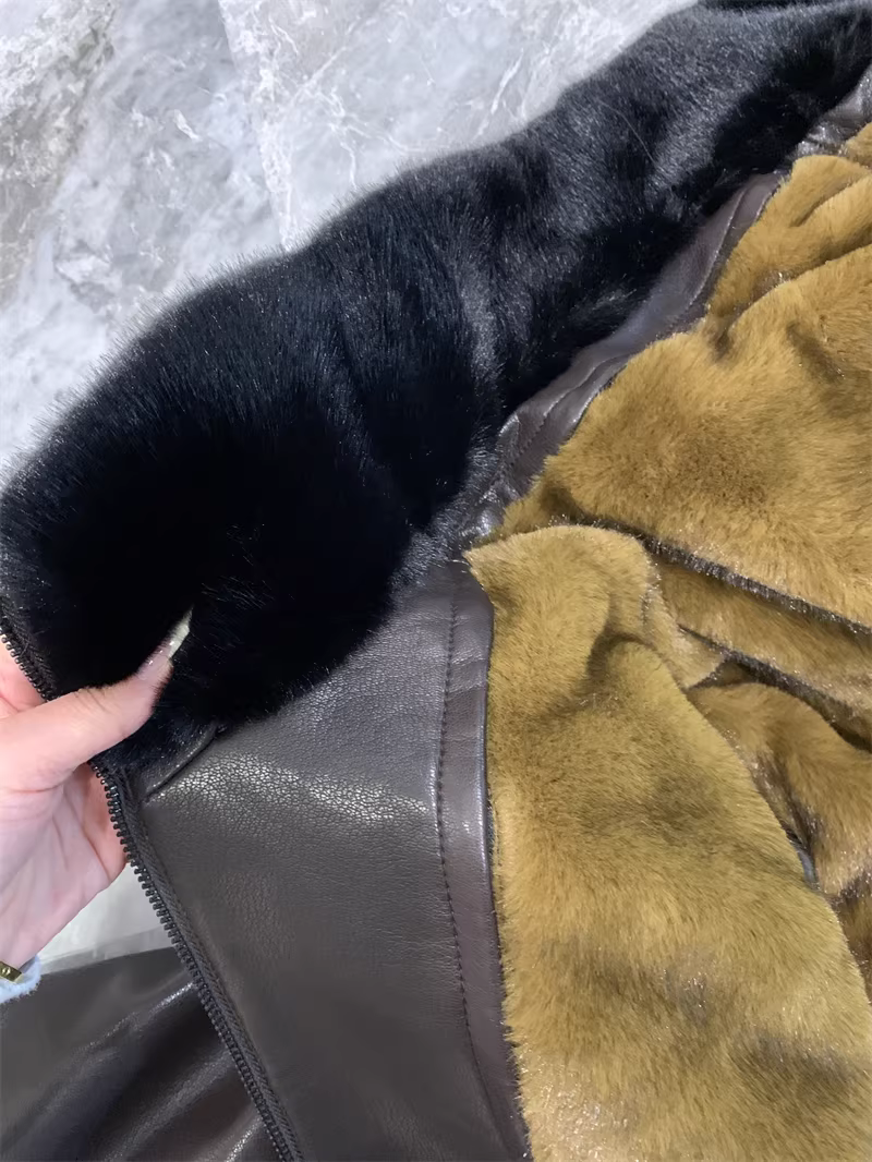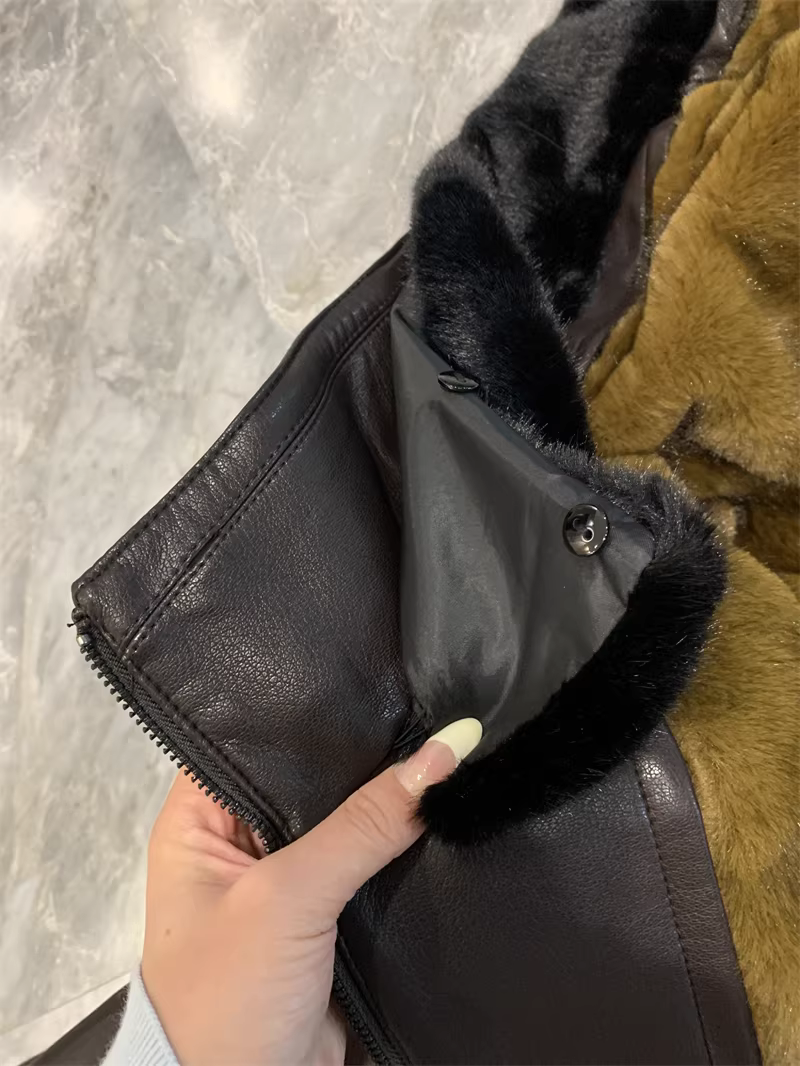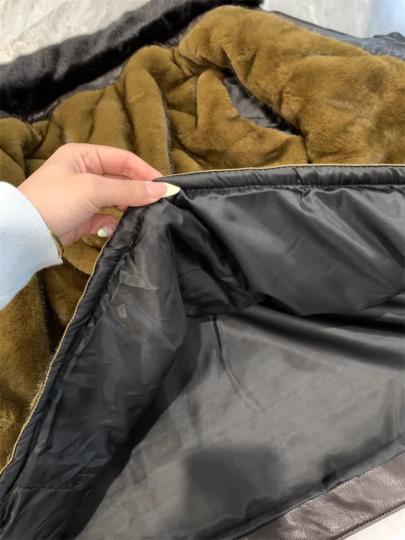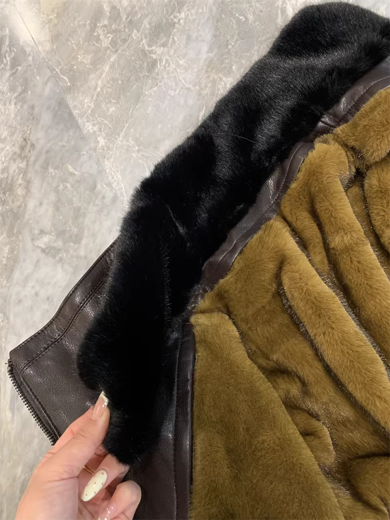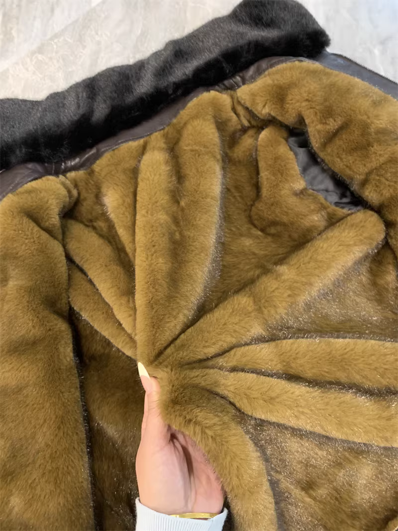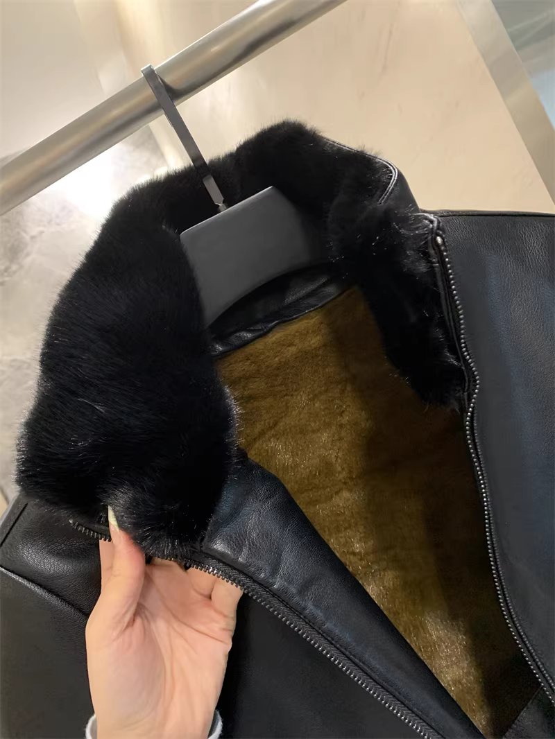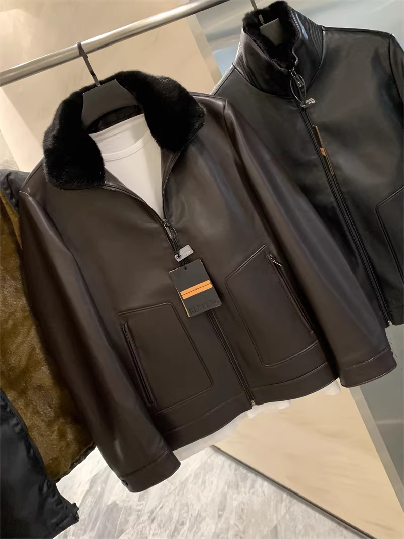 Don Quixote, cảm giác sang trọng nhẹ nhàng! Cổ áo lông chồn giả kiểu La Mã! Áo khoác da lót lông cừu dày dặn, ấm áp dành cho nam.