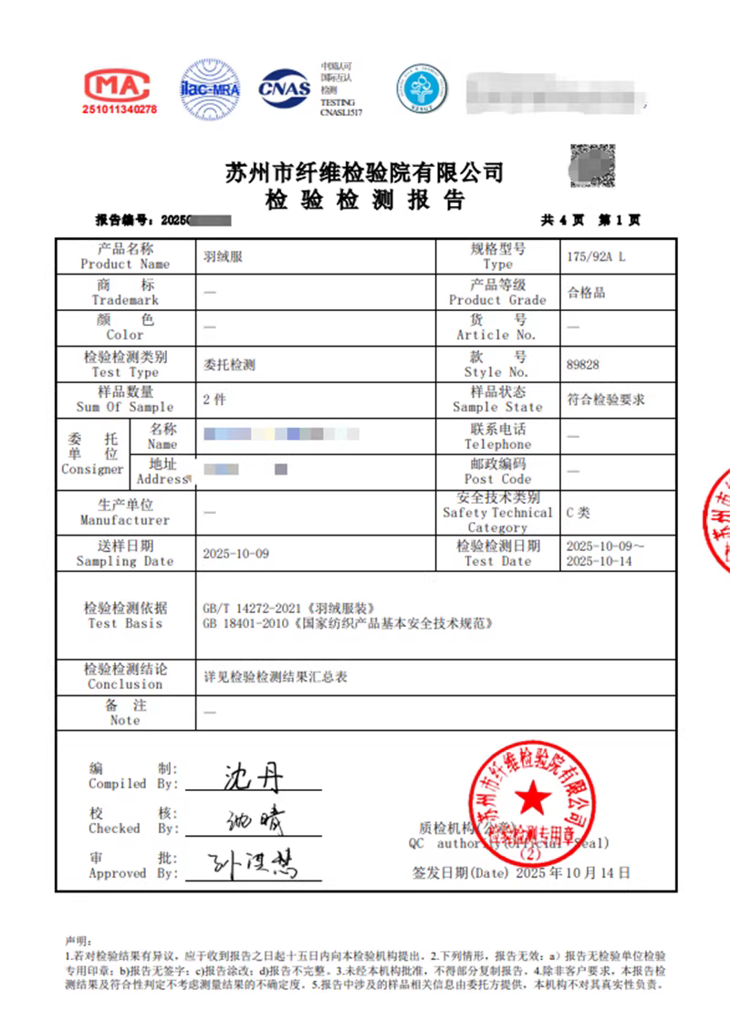 | 175 | 胸围118 | 连肩袖长75.2 | 衣长68 | 充绒量35g |