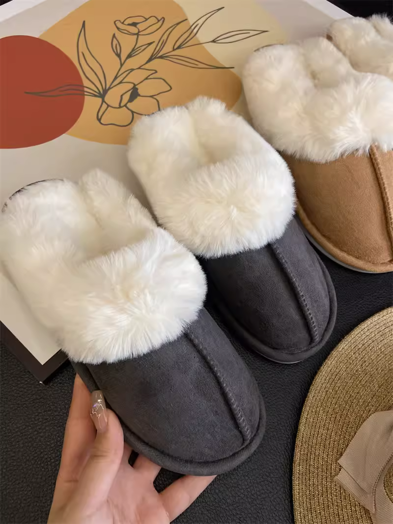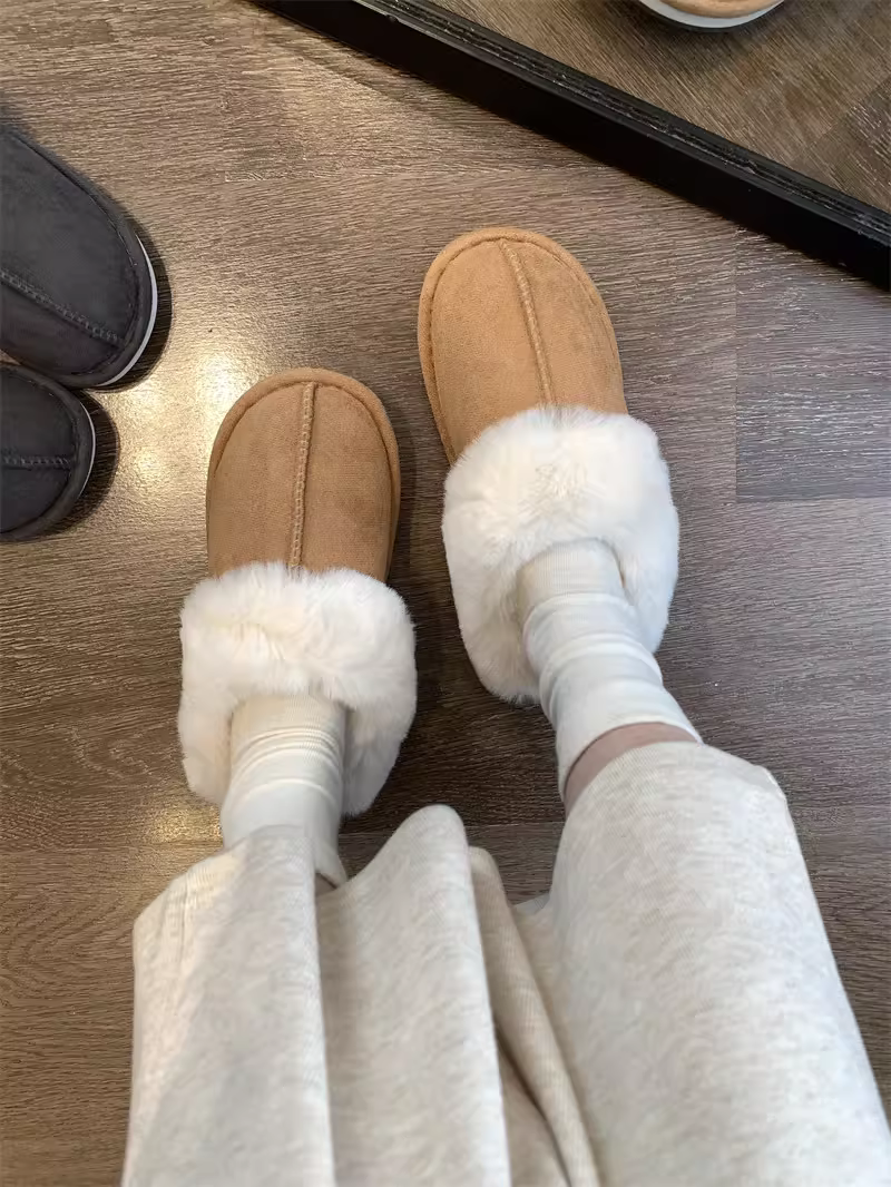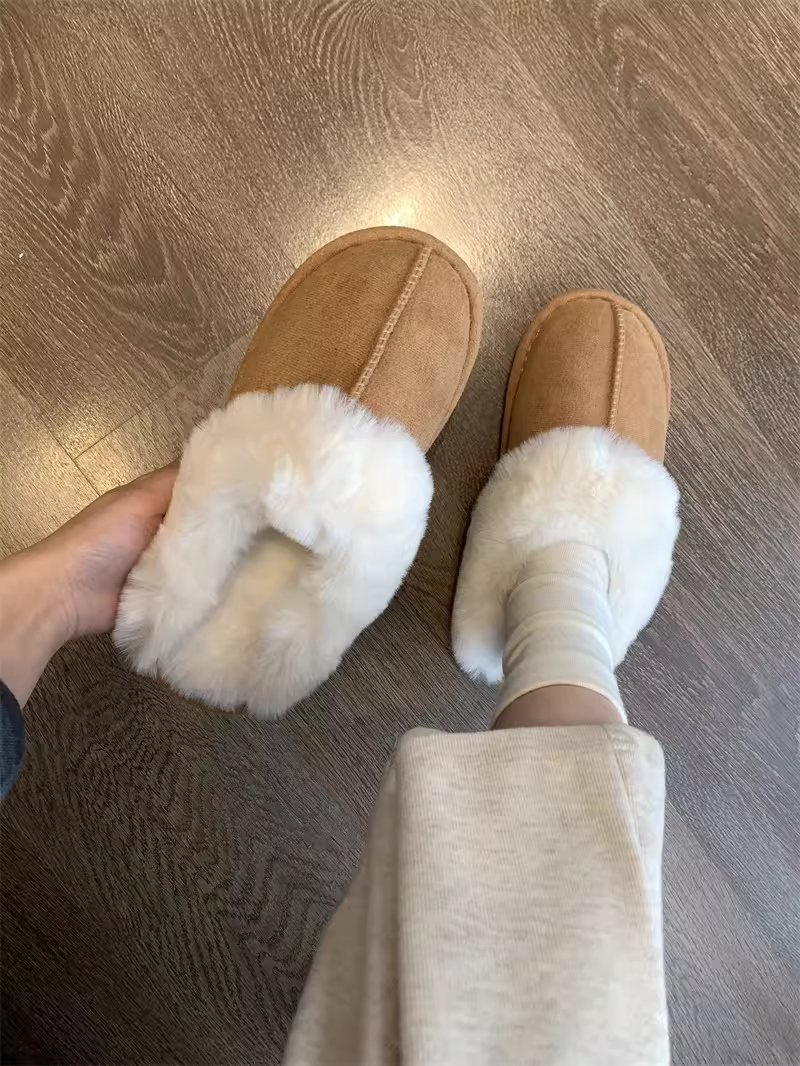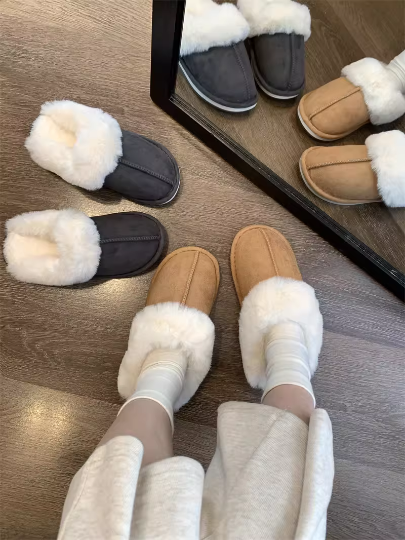 - Don Quixote cổ điển đa năng ấm áp ~ có thể mang vào mùa thu đông dép lông thú giả tích hợp mũi kín giày cotton sang trọng