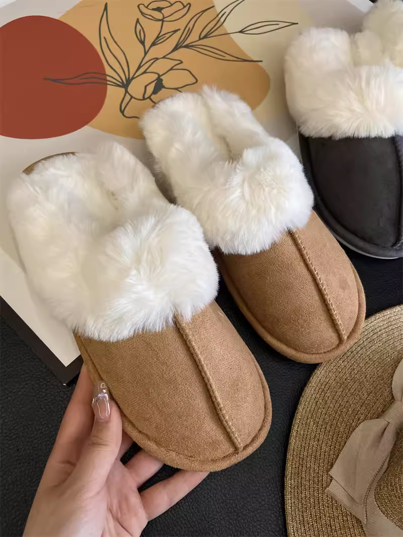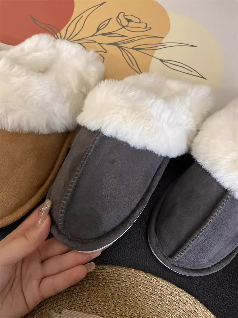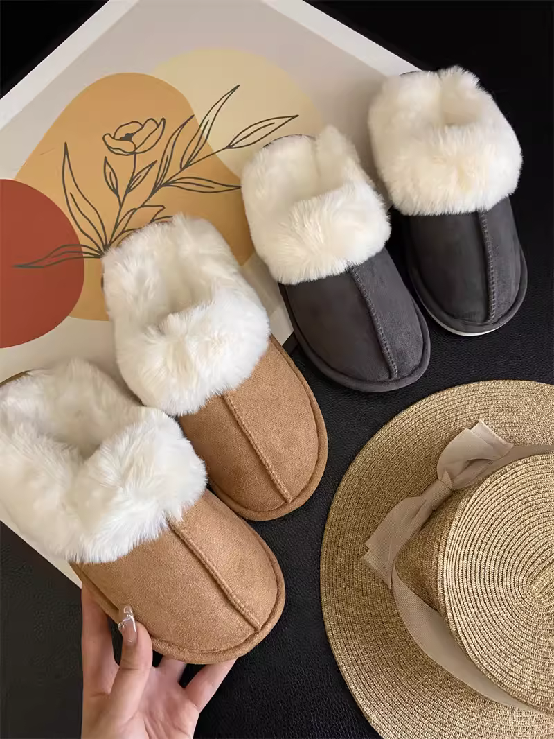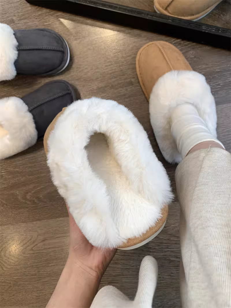 - Don Quixote cổ điển đa năng ấm áp ~ có thể mang vào mùa thu đông dép lông thú giả tích hợp mũi kín giày cotton sang trọng