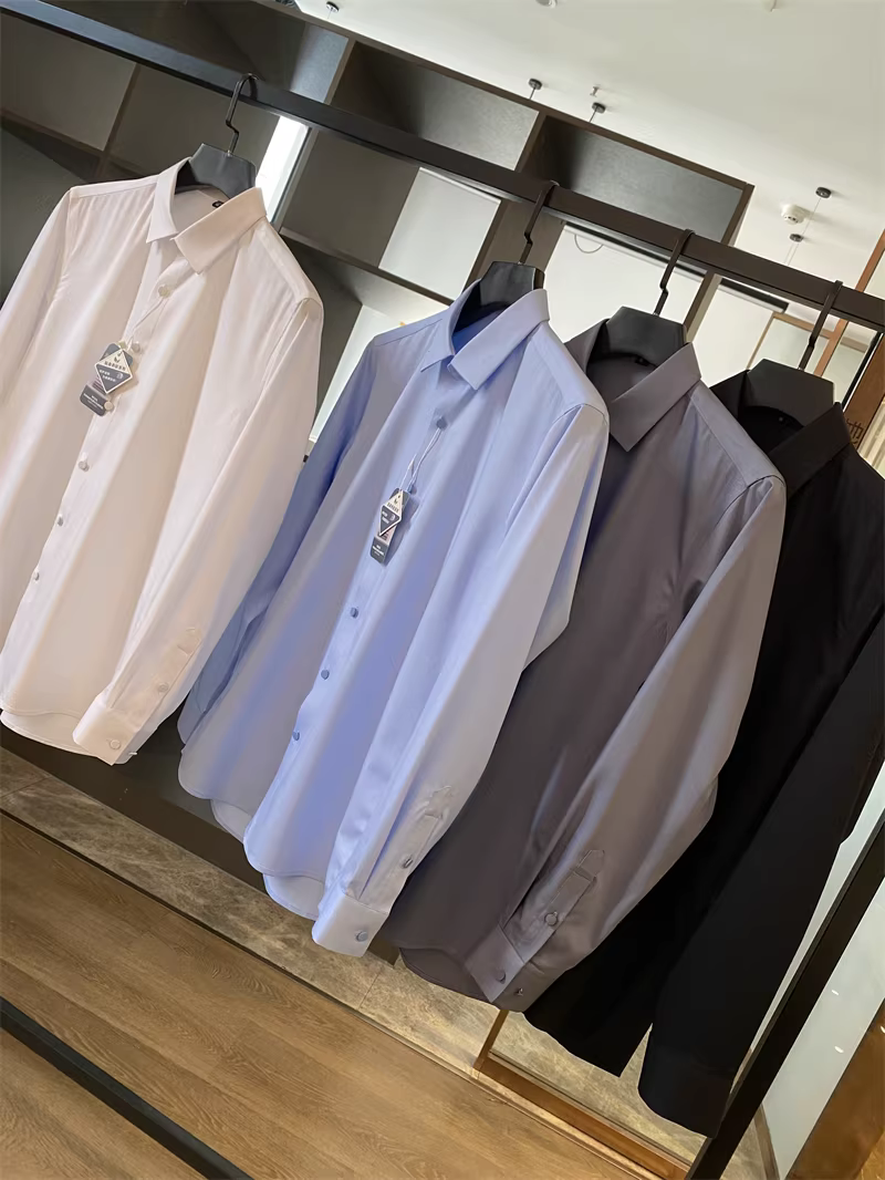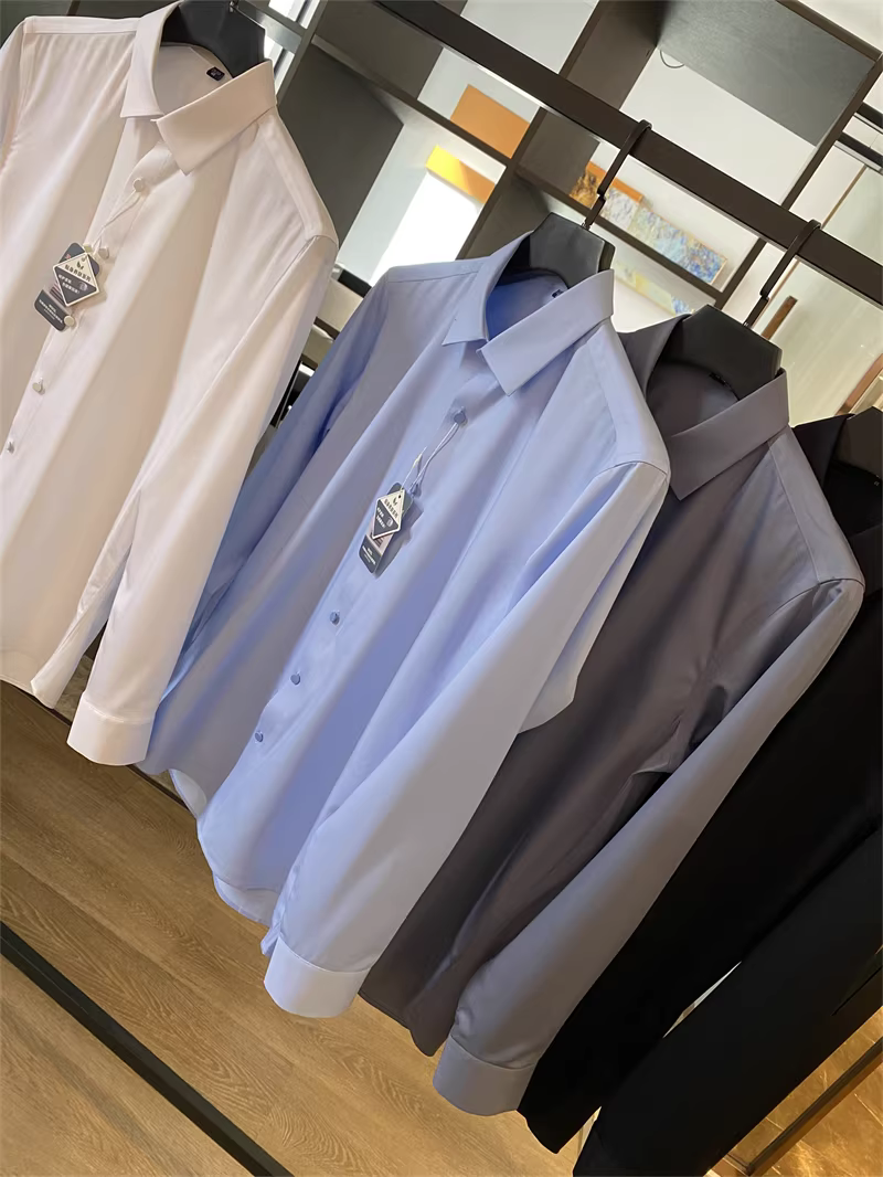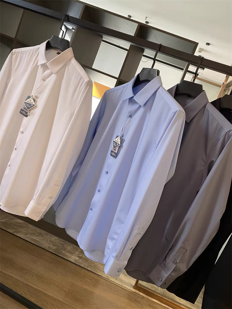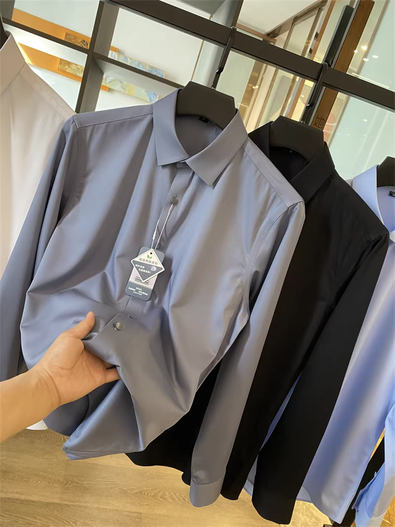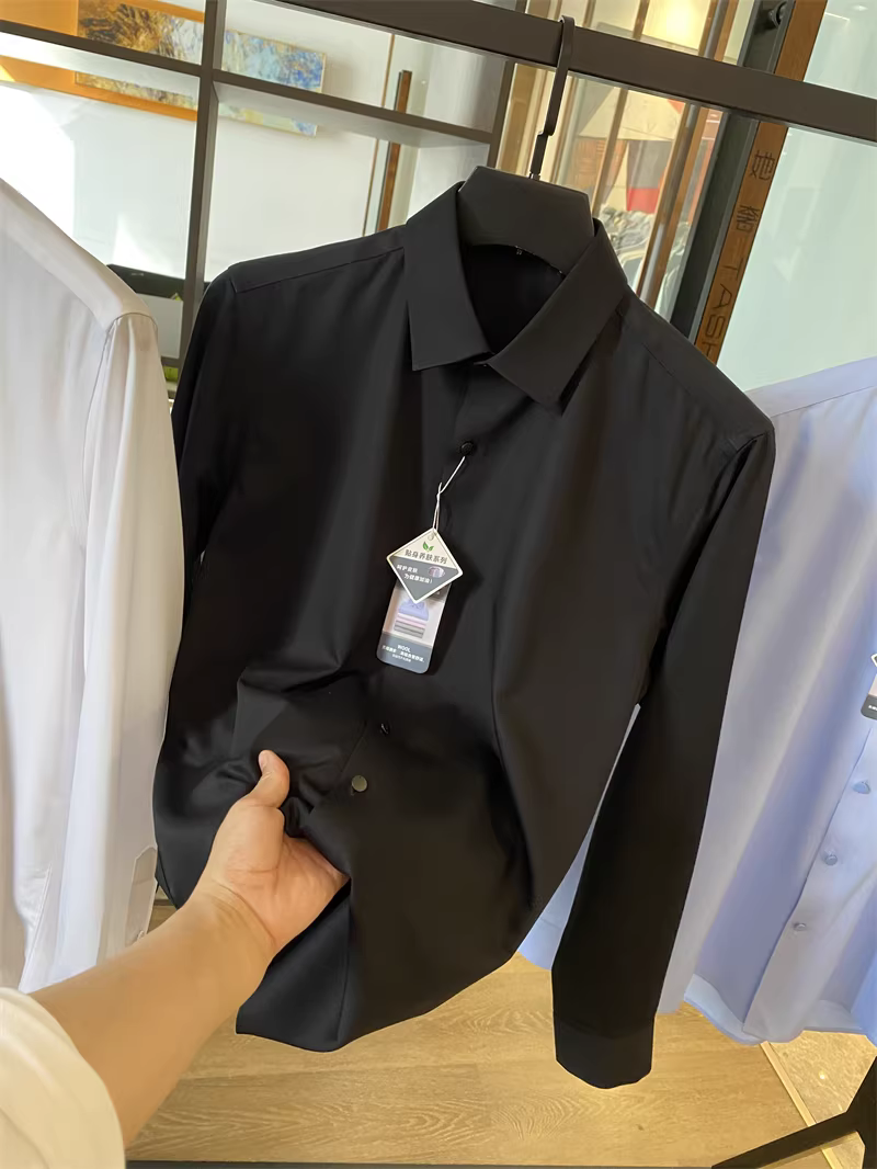 Don Quixote Co giãn, liền mạch và không nhăn! Vải chống nhăn có khả năng giữ hình! Áo sơ mi dài tay màu trơn đa năng dành cho nam.