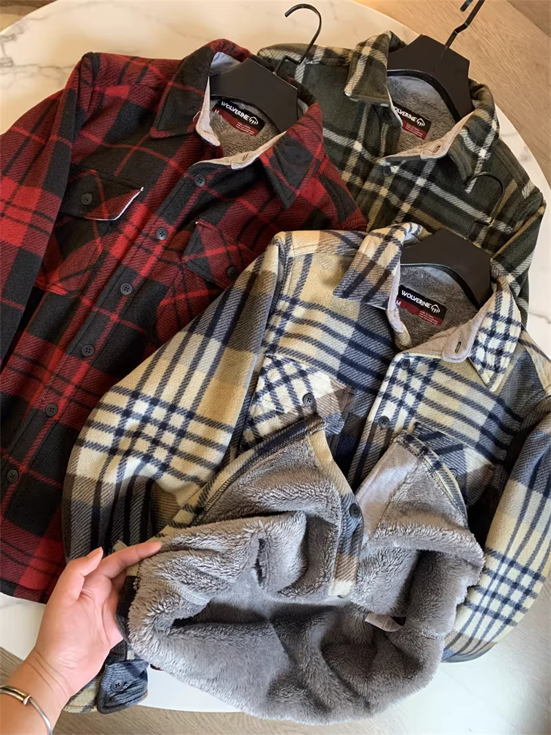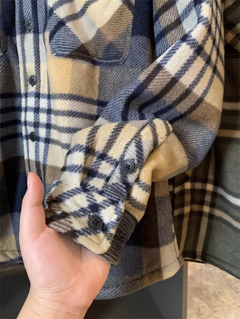 Don Quixote có thể sống sót qua mùa đông ở miền nam! Được lót lông cừu và dày dặn để giữ ấm! Áo khoác kẻ sọc thường ngày bằng vải flannel mùa thu đông dành cho nam.