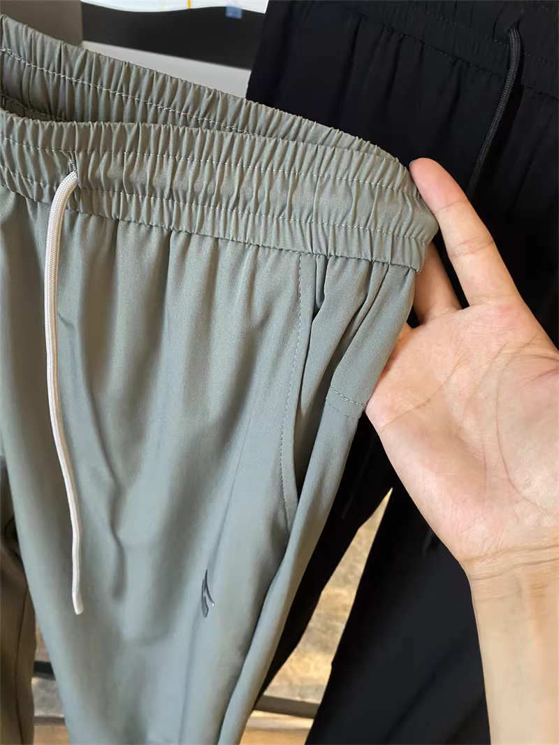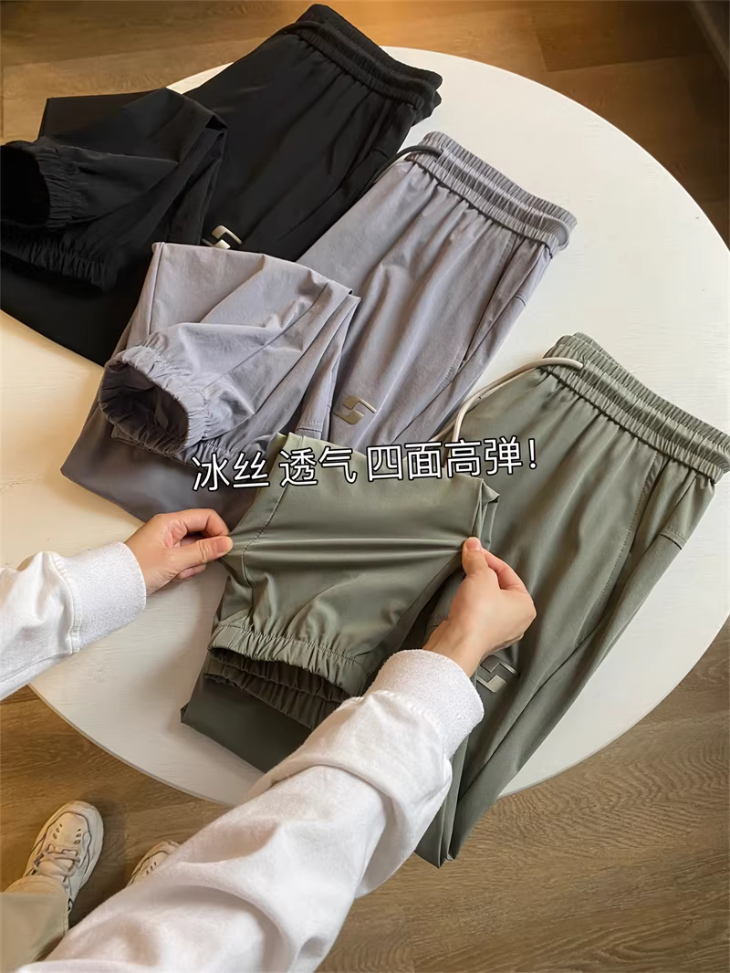 Don Quixote có thể thở được! Vải lụa băng thoáng khí và co giãn cao ở mọi mặt! Quần thể thao nam mỏng, có dây rút, kiểu dáng thường ngày