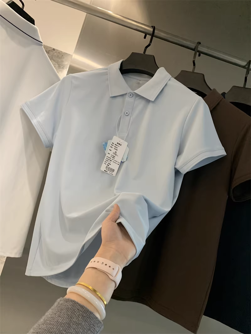 Don Quixote Công nghệ tuyệt vời! Áo sơ mi polo ngắn tay đa năng, thoáng khí, thân thiện với da, màu trơn dành cho cặp đôi mùa hè