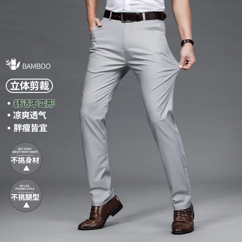 - Don Quixote Cool Bamboo Fiber! Đầy màu sắc! Quần âu nam dáng thẳng, may đo, phong cách thường ngày mùa hè.