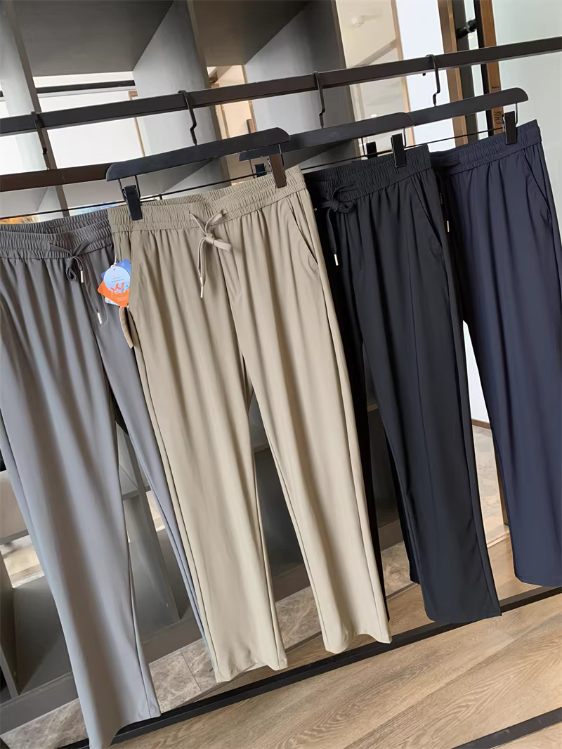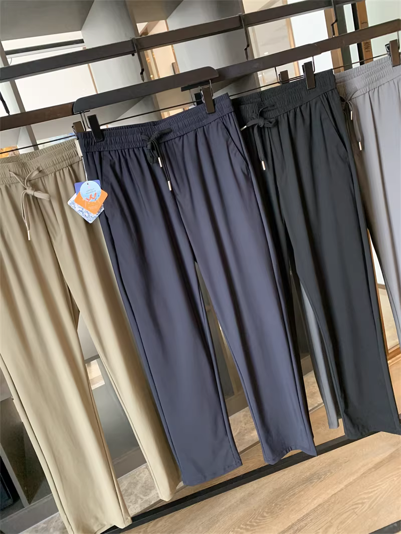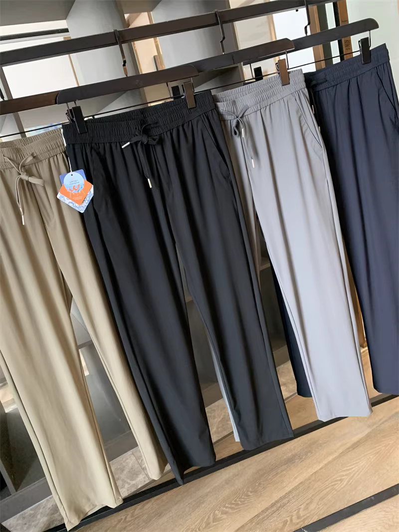 Don Quixote Cool Silk! UPF50+! Quần âu nam ống đứng, chất liệu thoải mái, thoáng khí, lưng thun co giãn.