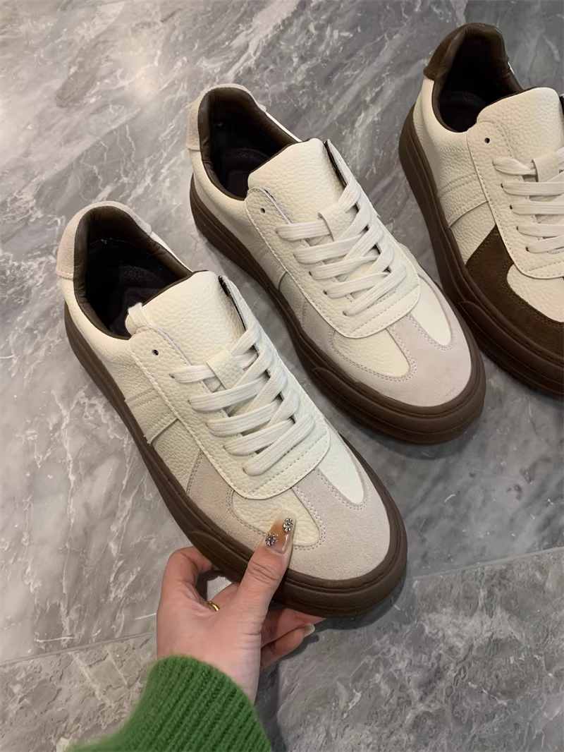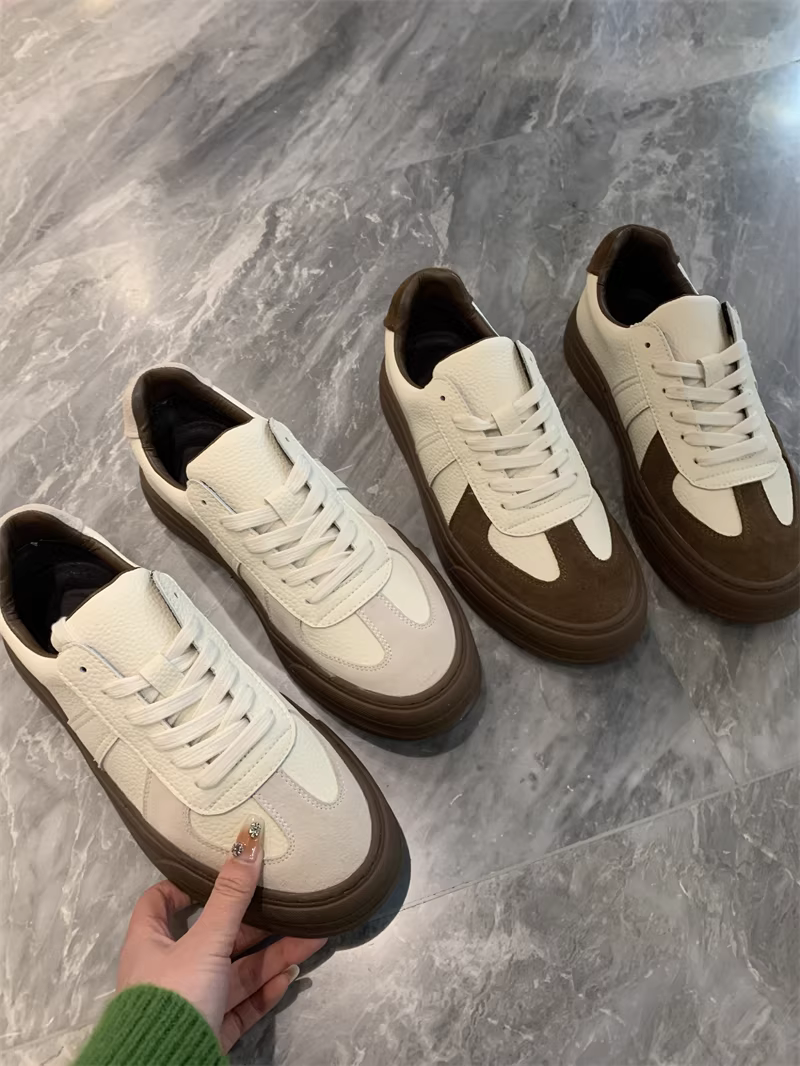 - Don Quixote da lộn bò + phối sợi microfiber! Đế cao su mềm chống trơn trượt, giày thể thao nam da thật buộc dây, kiểu dáng thời trang
