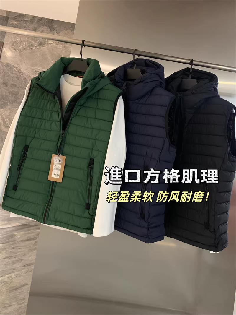 Don Quixote đã nhập khẩu chất liệu vải kẻ caro! Áo khoác vest cotton có mũ trùm đầu nhẹ và ấm áp cho nam giới, thích hợp cho mùa thu và mùa đông.