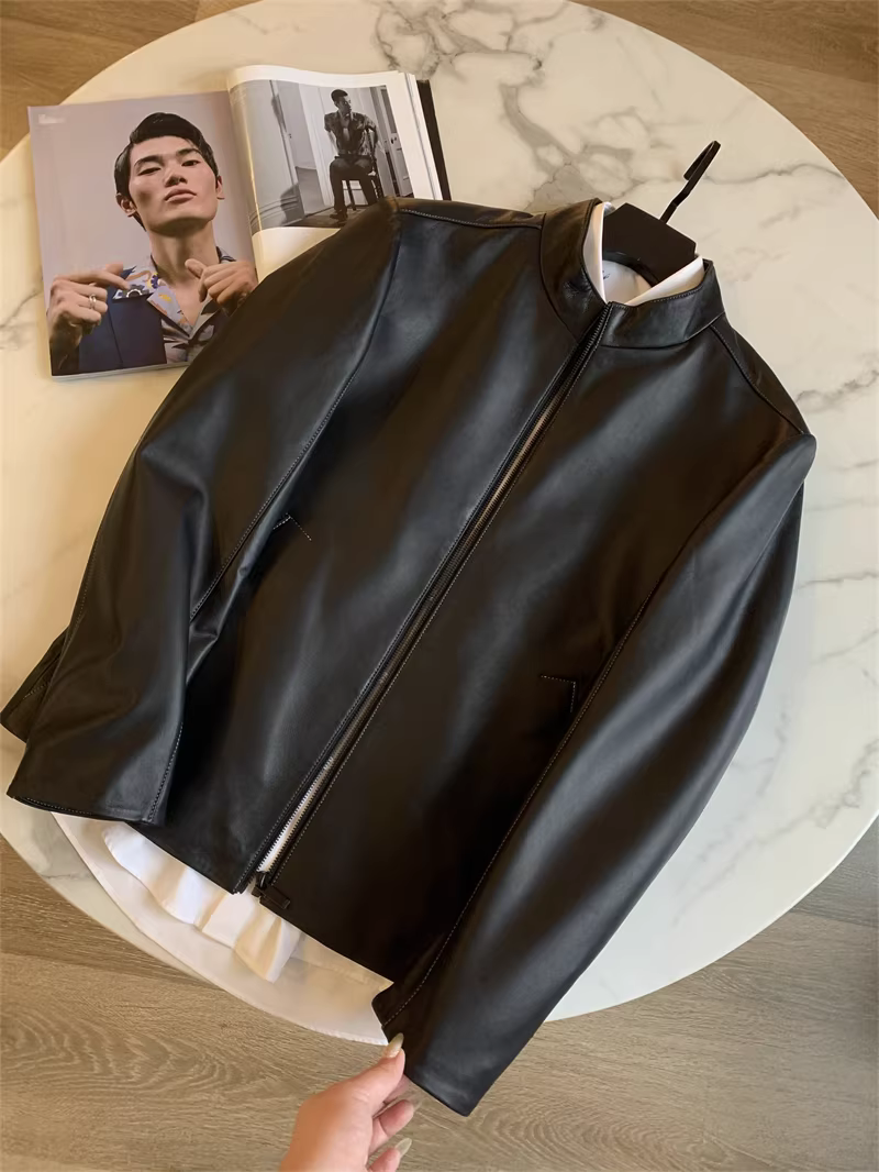 - Don Quixote đã nhập khẩu da cừu! Áo khoác da nam cổ đứng da cao cấp phong cách doanh nhân mùa thu hợp thời trang