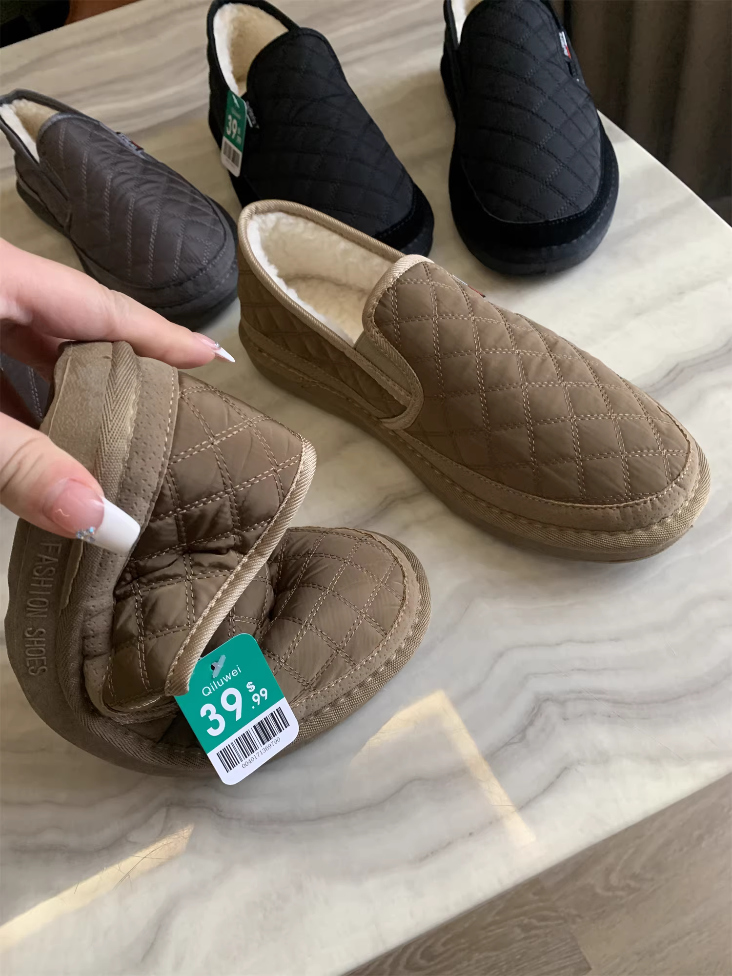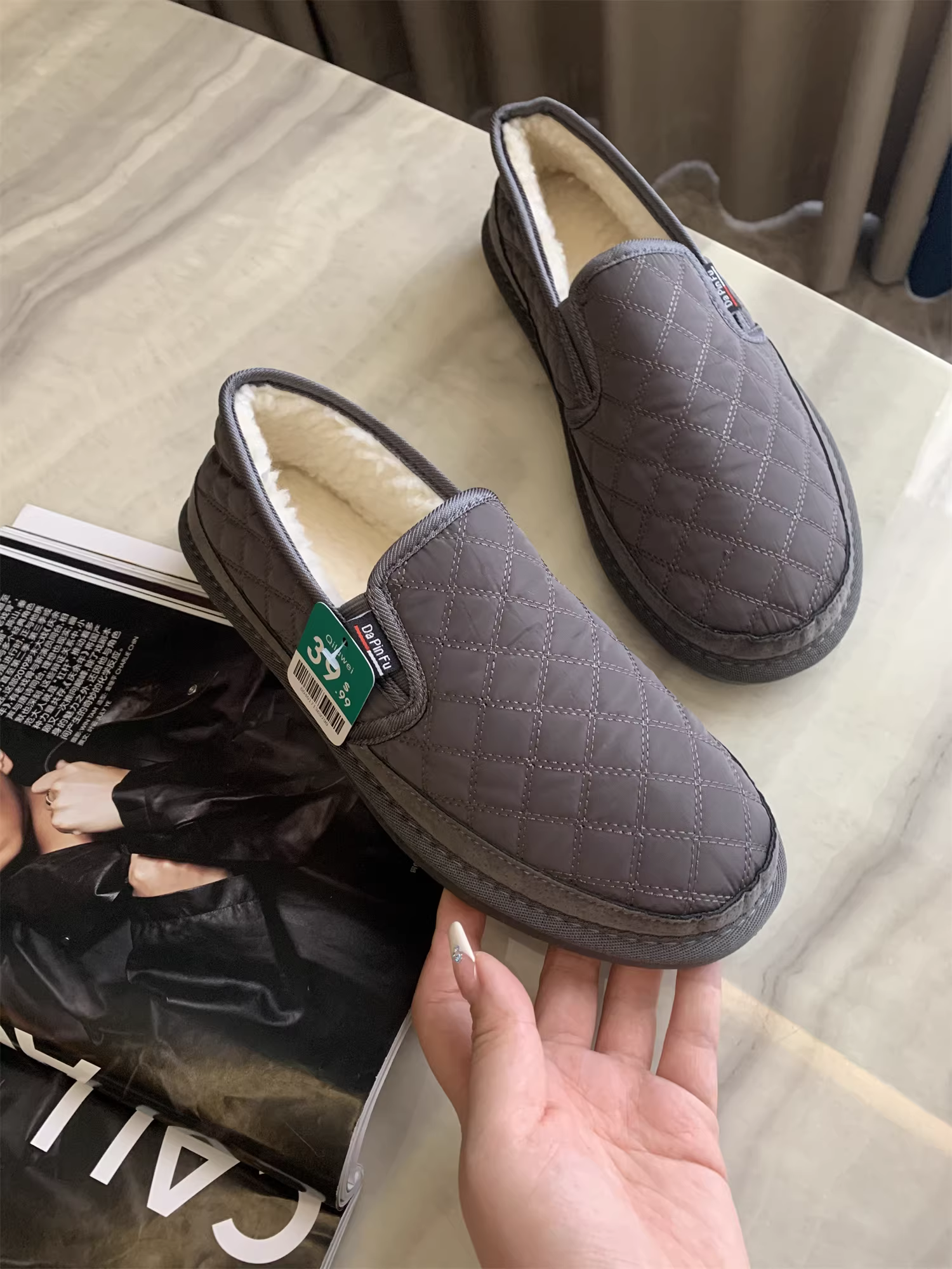 - Don Quixote đặt hàng! $39,99 USD! Giày lười lót lông cừu mùa đông, dày dặn, ấm áp, kiểu dáng thời thượng.