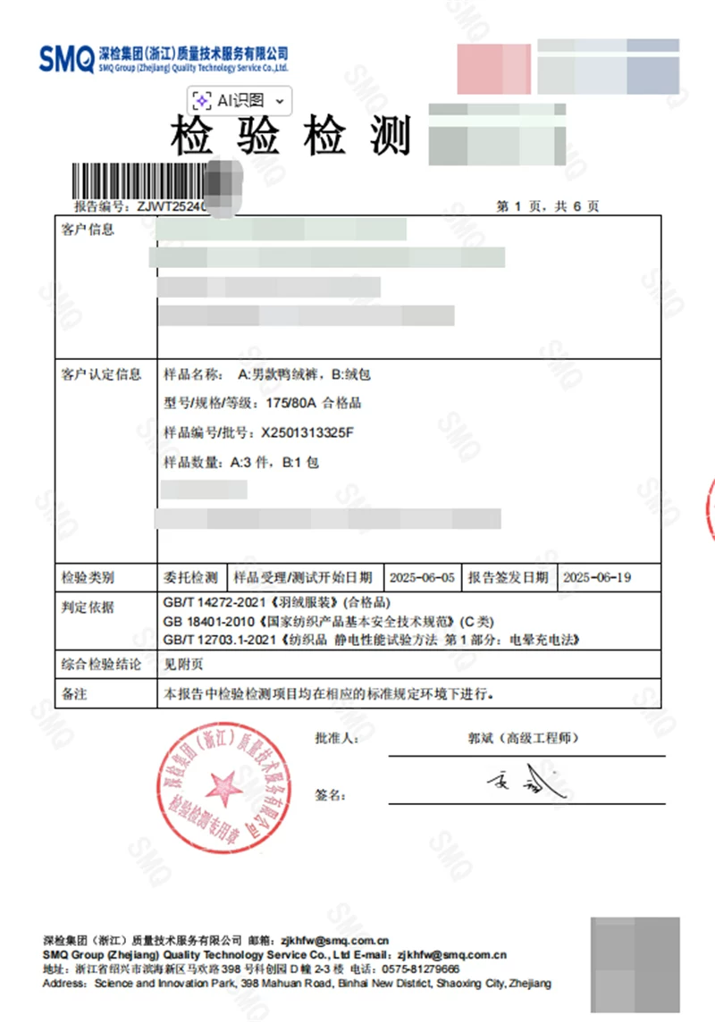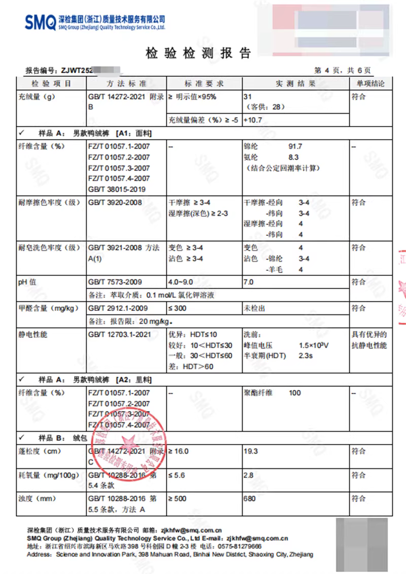 填充物:鸭绒(绒子含量90%)