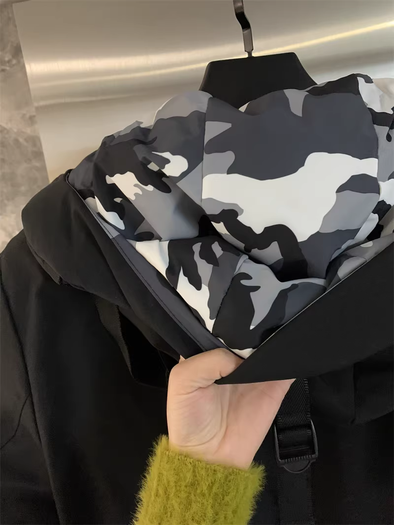 Don Quixote đến Canada! Chống lạnh và ấm áp! Áo khoác cotton dài trung bình có mũ trùm đầu dày dặn dành cho nam mùa thu đông.