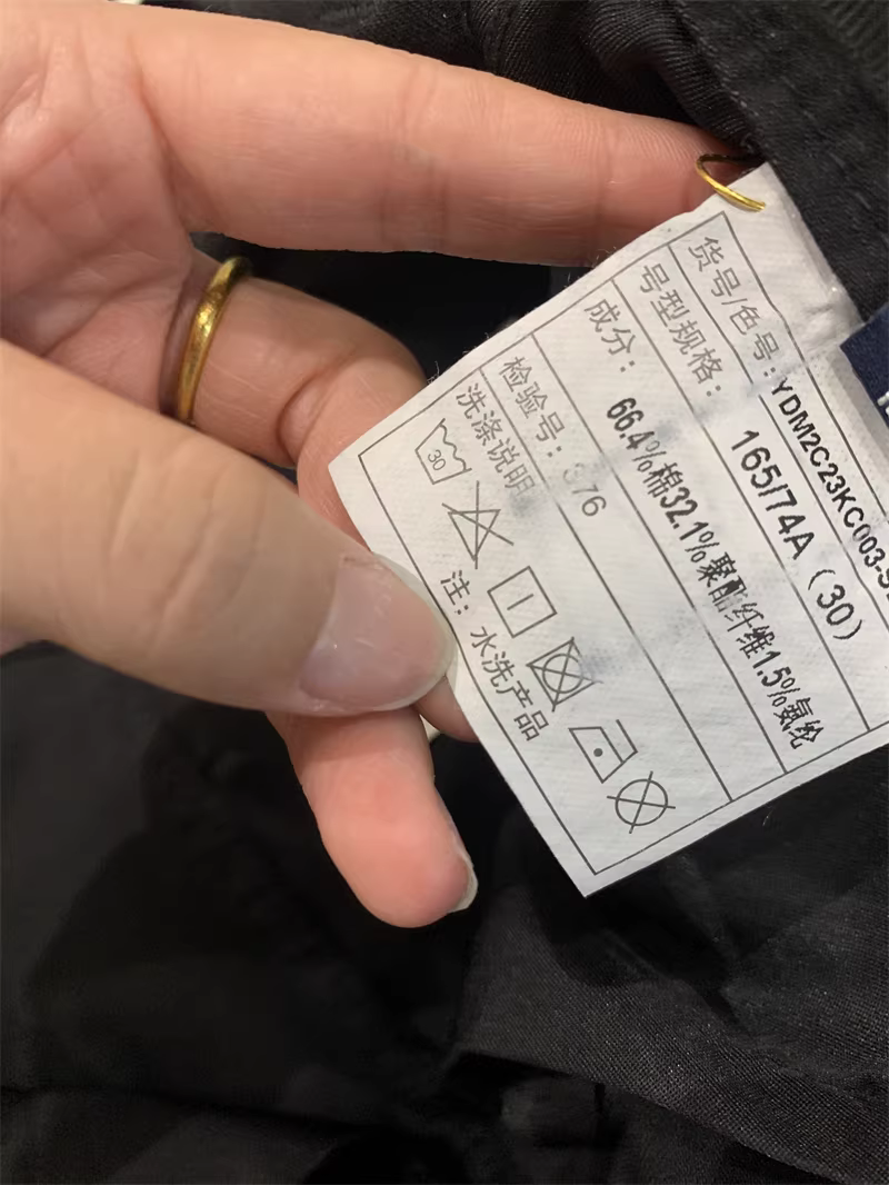 | 29 | 腰围78.7 | 臀围94 | 脚口围33 | 裤长106 |