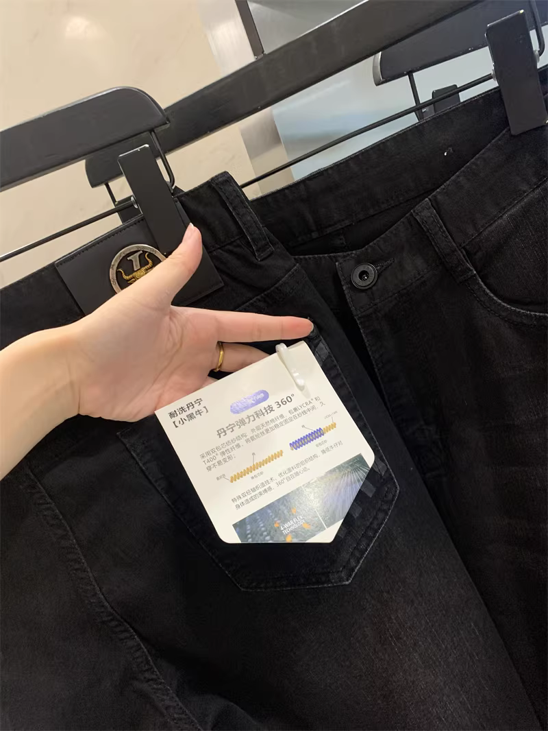 - Don Quixote Denim Little Black Bull! T400 Lycra có độ co giãn cao! Quần jean ống thẳng thông thường mùa thu đông dành cho nam