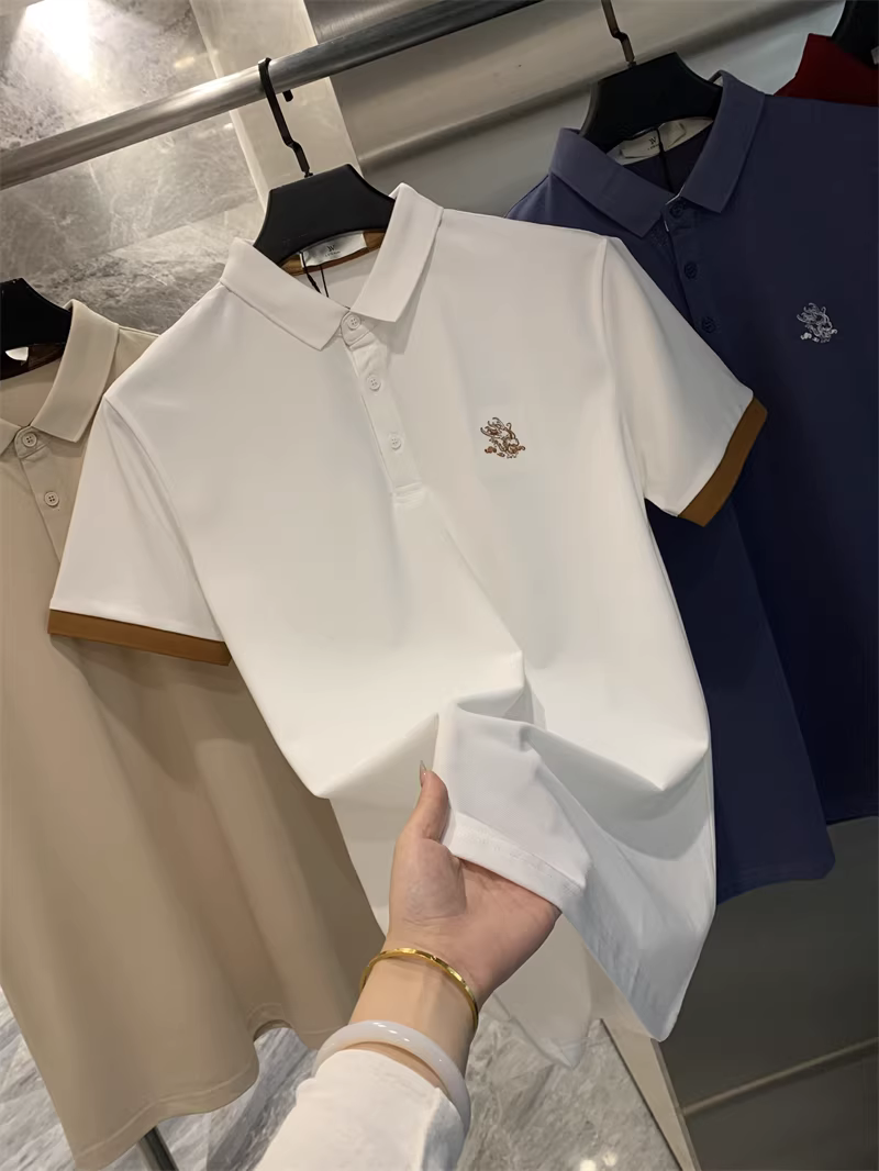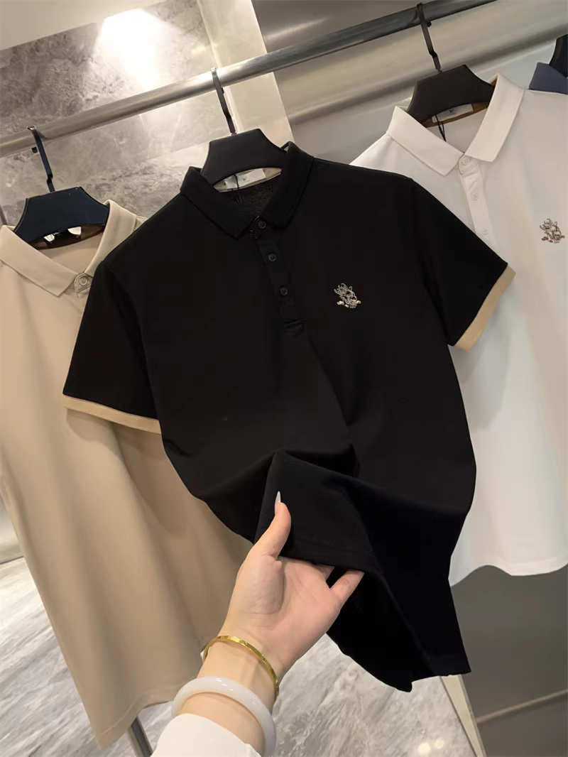 - Don Quixote đi mua sắm để đặt hàng! Thoải mái và thoáng khí! Áo polo nam mùa hè màu trơn thêu tay tay ngắn