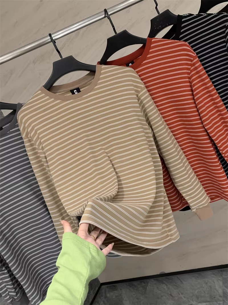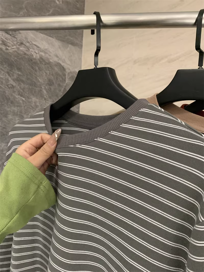 文艺清新的细条纹 且肩袖与大身经过水平对缝!