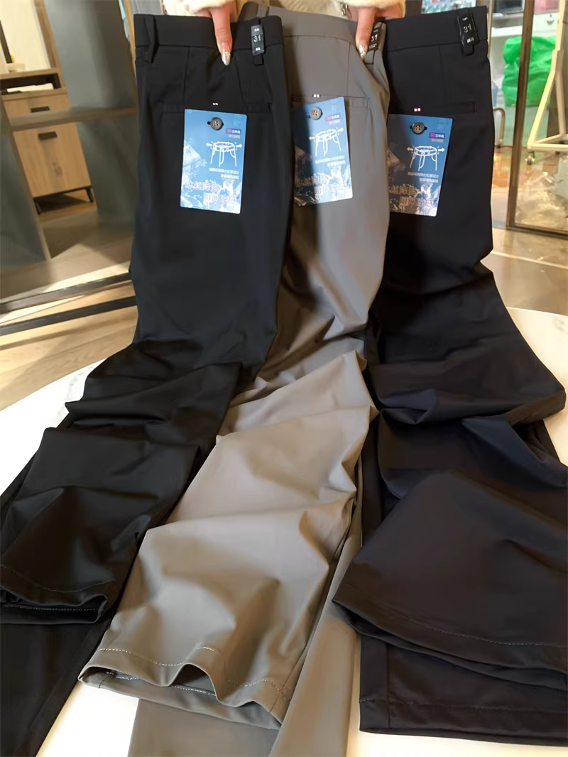 Don Quixote độc quyền! Vải kỹ thuật bảo vệ ba lớp với độ đàn hồi cao 3D! Quần nam màu trơn mỏng, nhanh khô, kiểu dáng thường ngày.