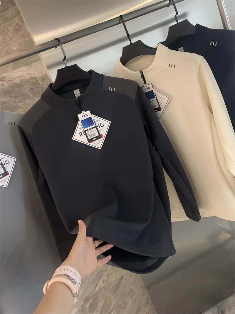 - Don Quixote Dòng Áo Thể Thao Ngoài Trời! Nhanh khô và thoáng khí! Áo thun thể thao nam mùa thu, kiểu dáng casual, dài tay, nửa khóa kéo