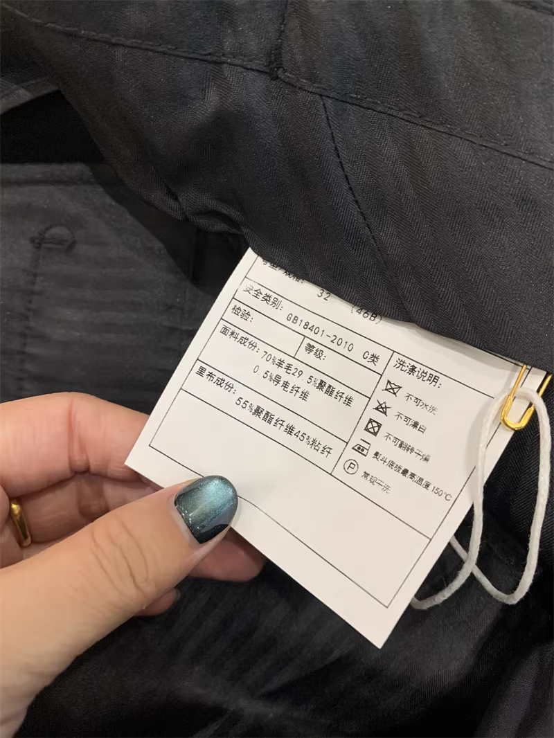 | 52B | 腰围93 | 臀围111.3 | 脚口围21.8 | 裤长109 |