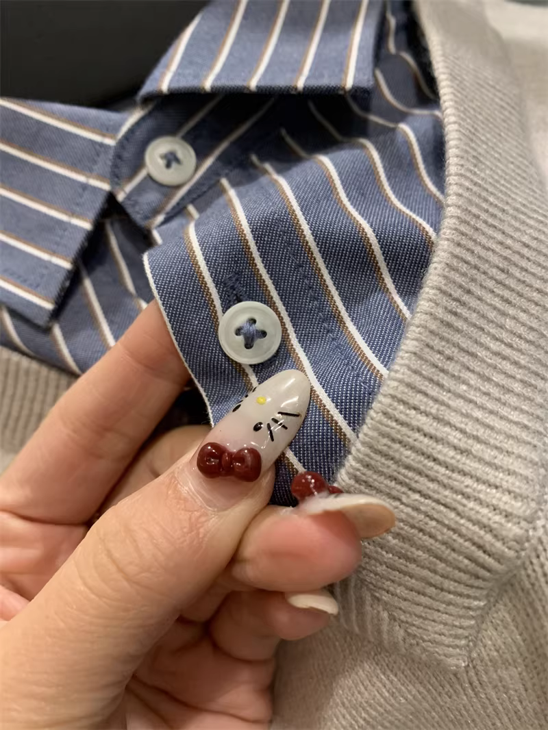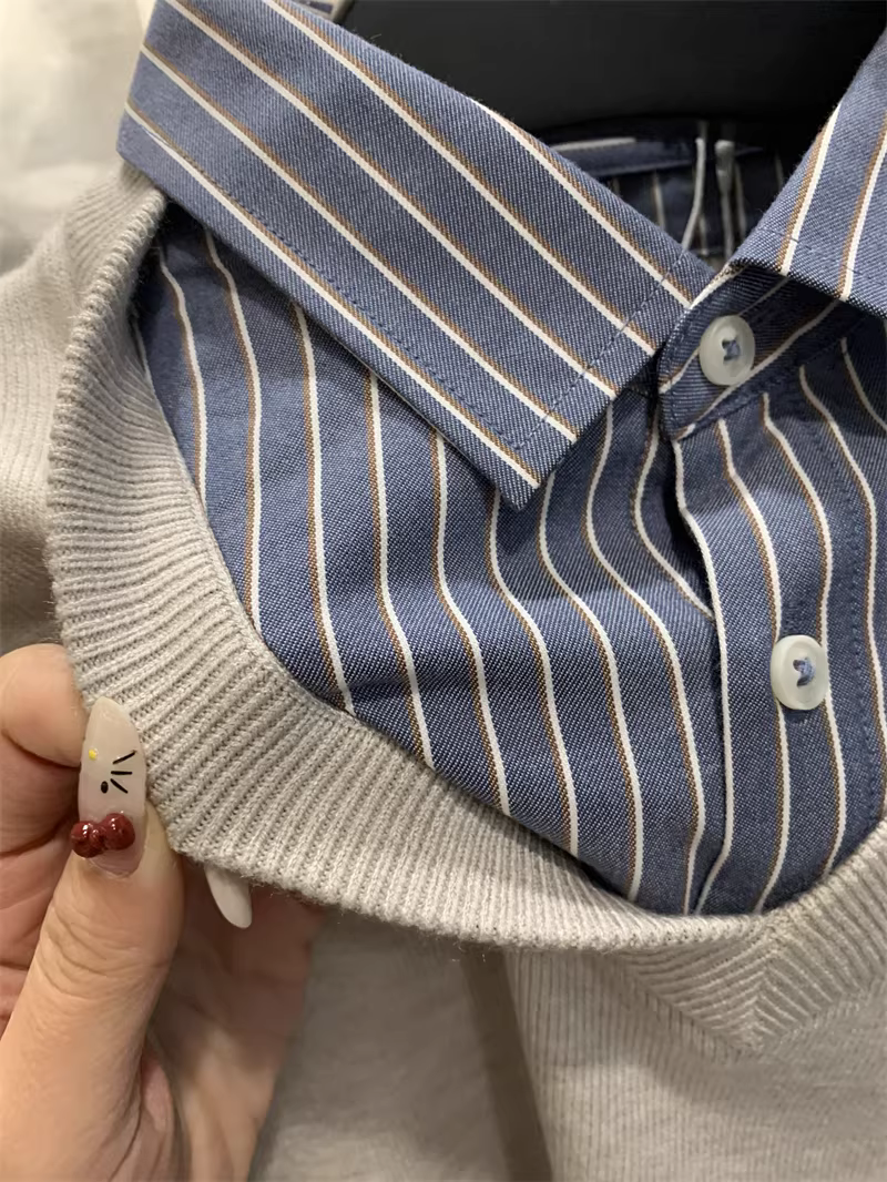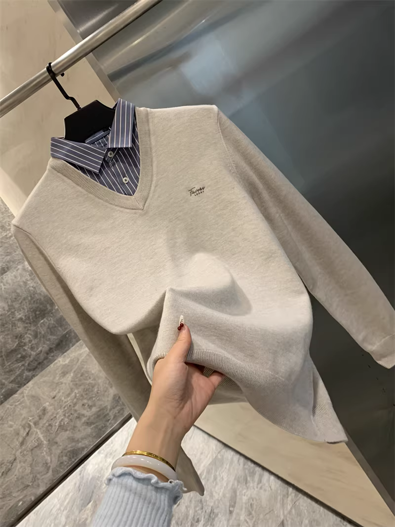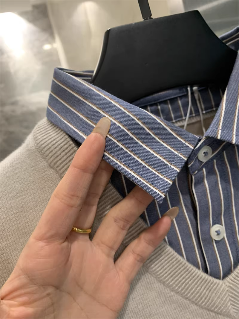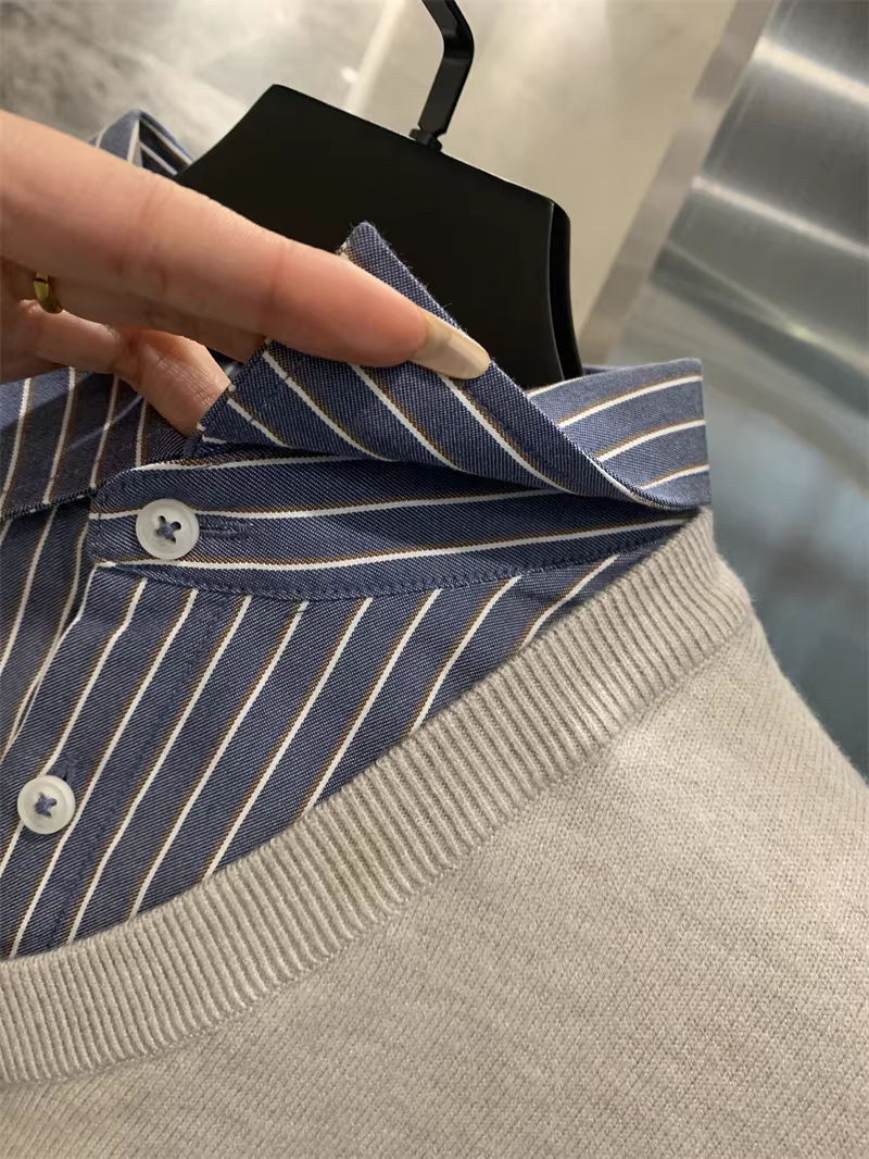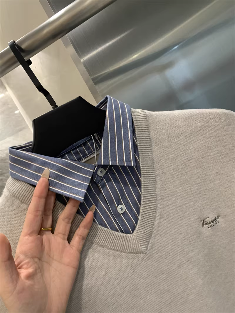 - Don Quixote dòng H! Bộ sưu tập giả hai mảnh cổ điển! Áo len dệt kim ấm áp có ve áo dành cho nam mùa thu đông.
