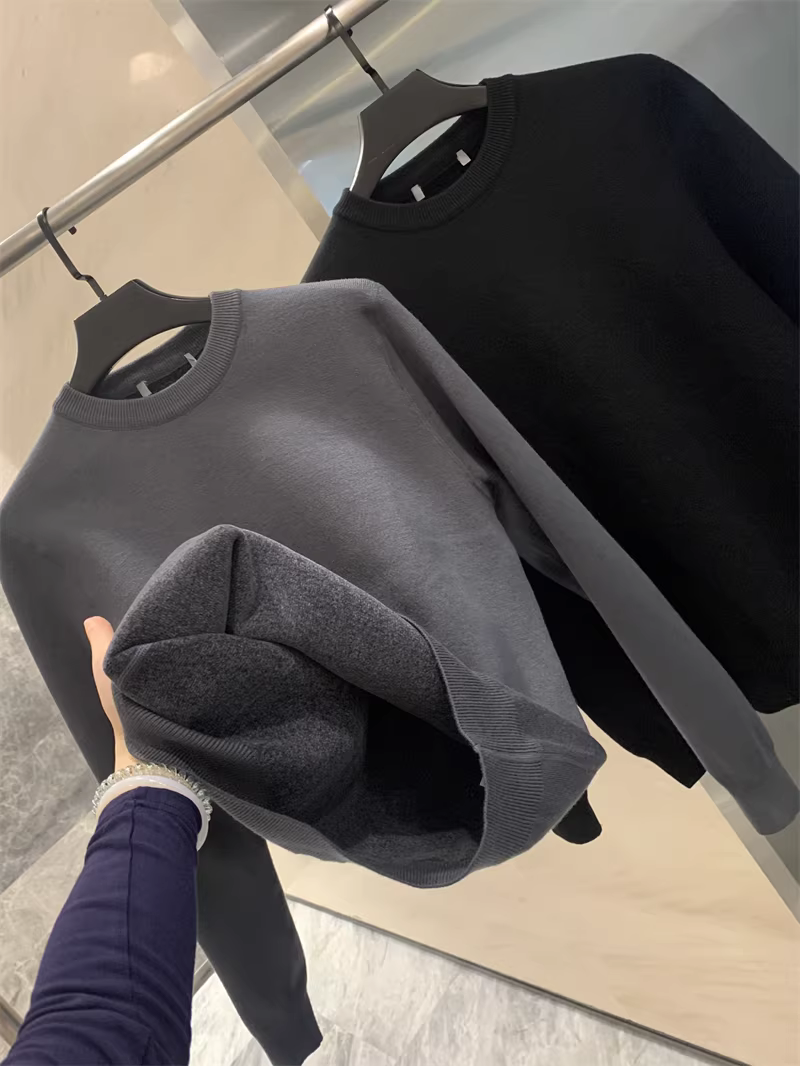 - Don Quixote dòng H! Chenille! Lớp lót lông cừu tích hợp! Áo len dệt kim màu trơn dành cho nam mùa thu đông.