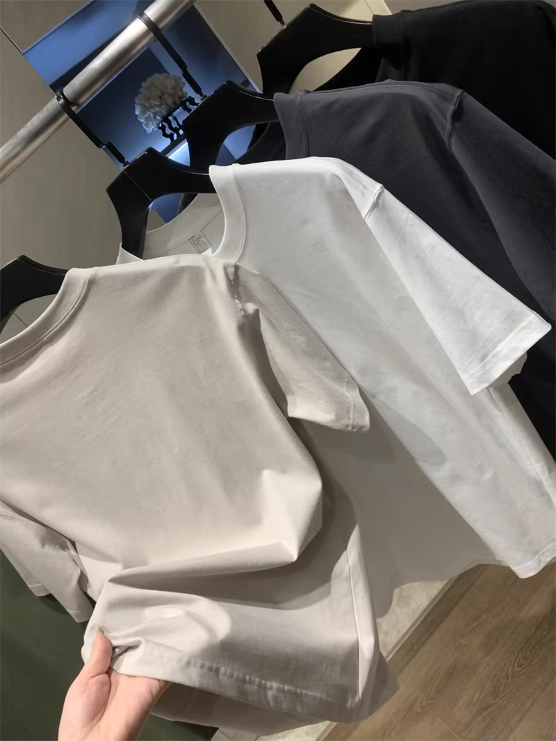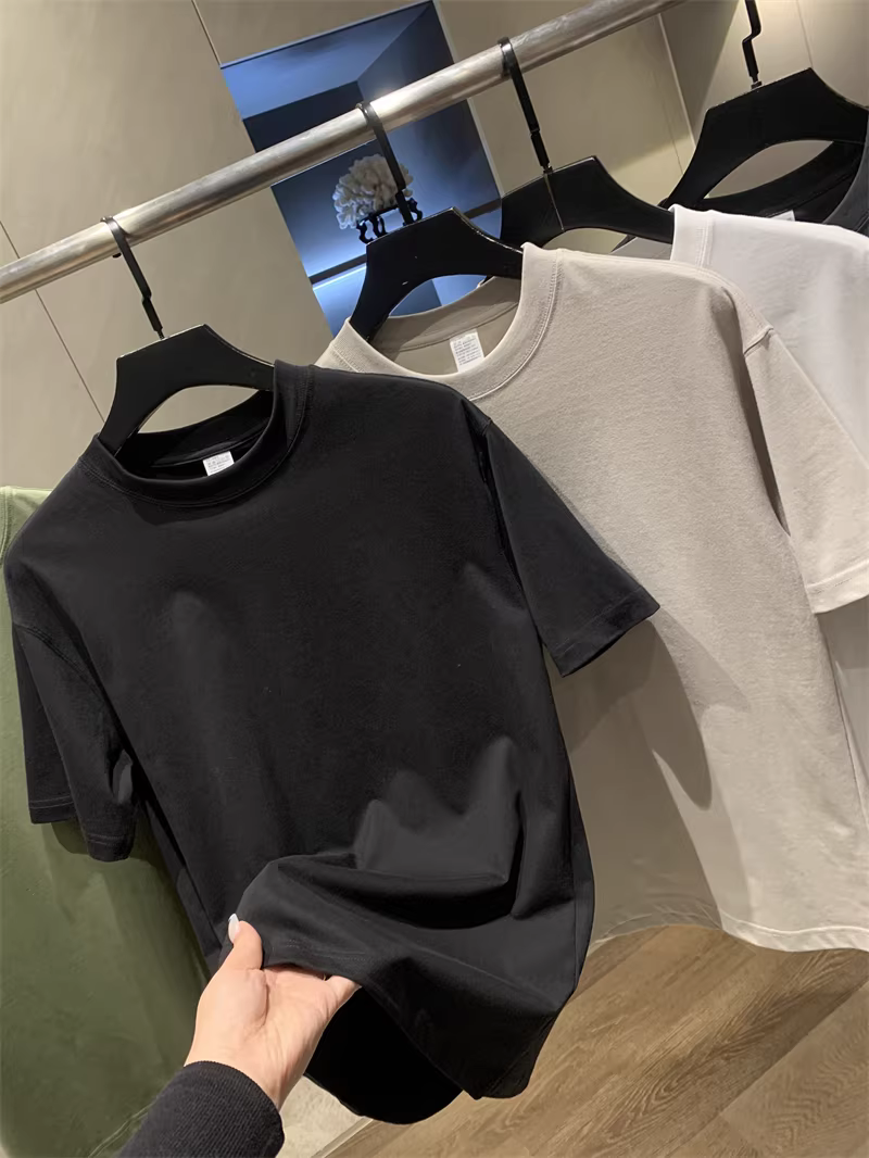- Don Quixote đóng hộp! 220g cotton sợi dài! Áo thun nam cổ tròn cơ bản đa năng mùa hè.