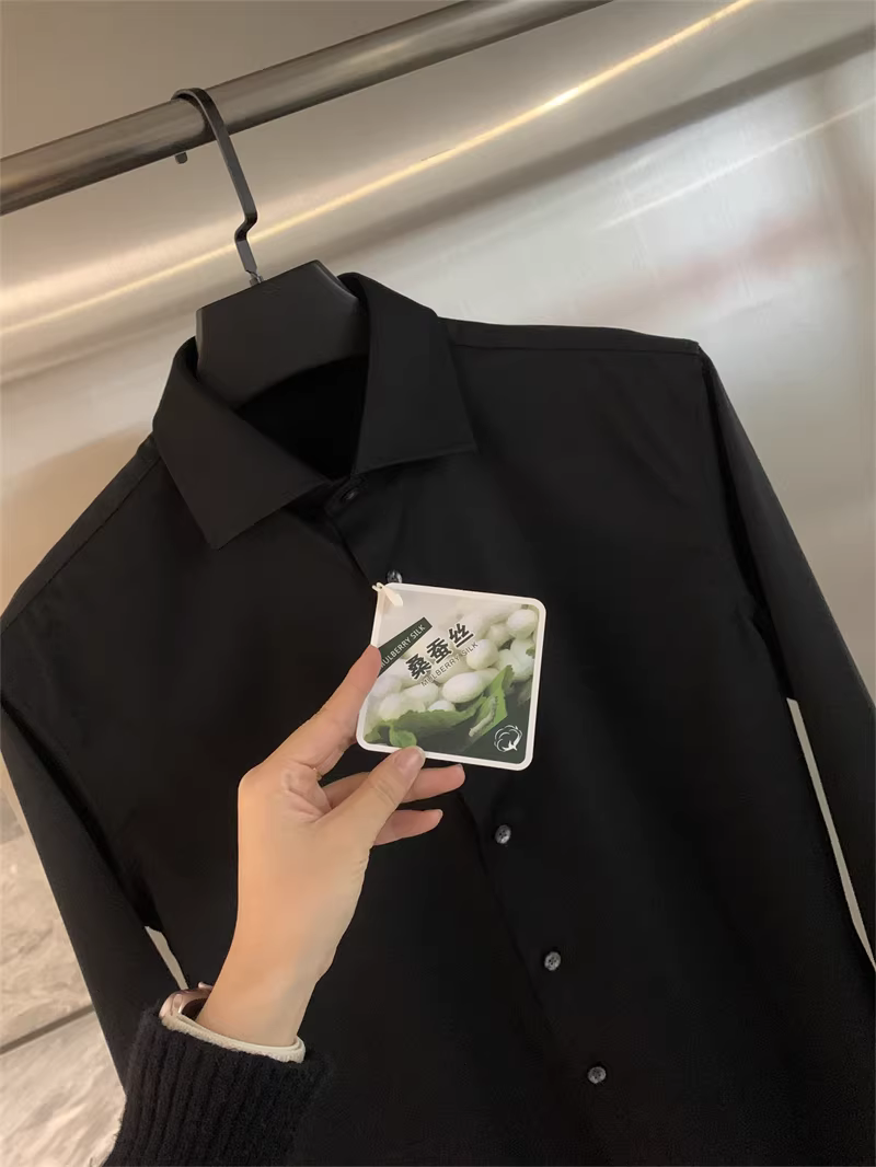 Don Quixote dòng Z của Ý! Chất liệu tơ tằm + modal! Áo sơ mi dài tay cổ Windsor mềm mại, không nhăn, co giãn.