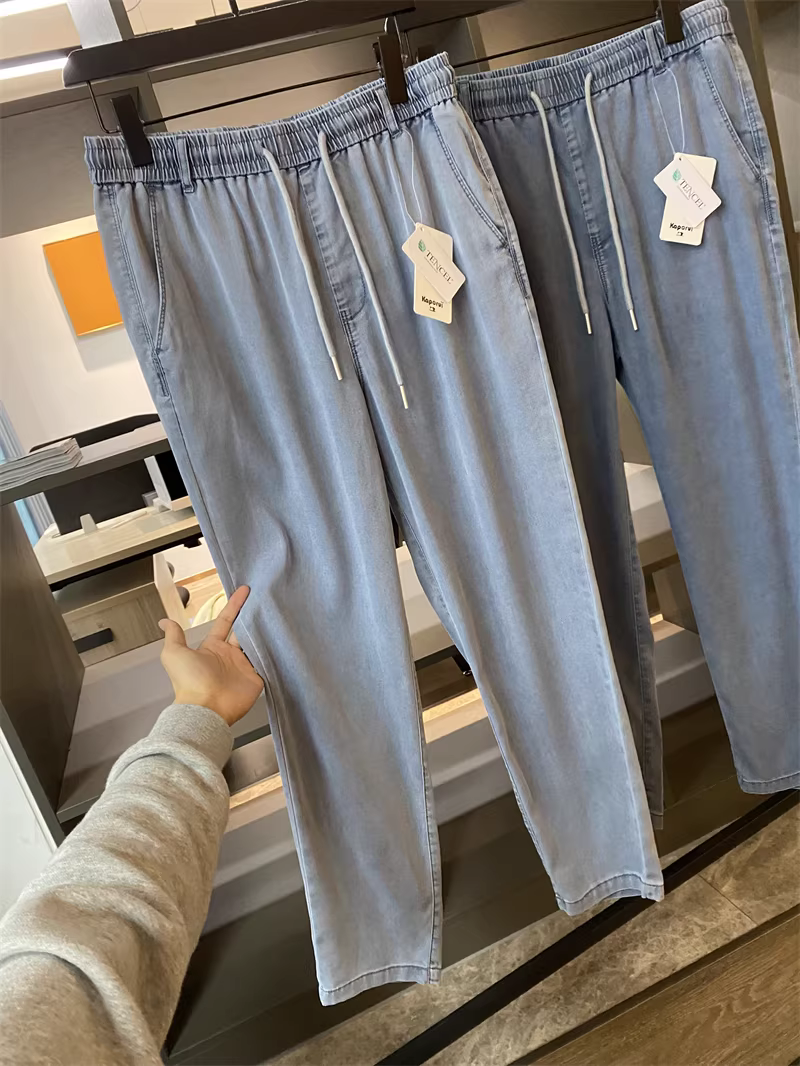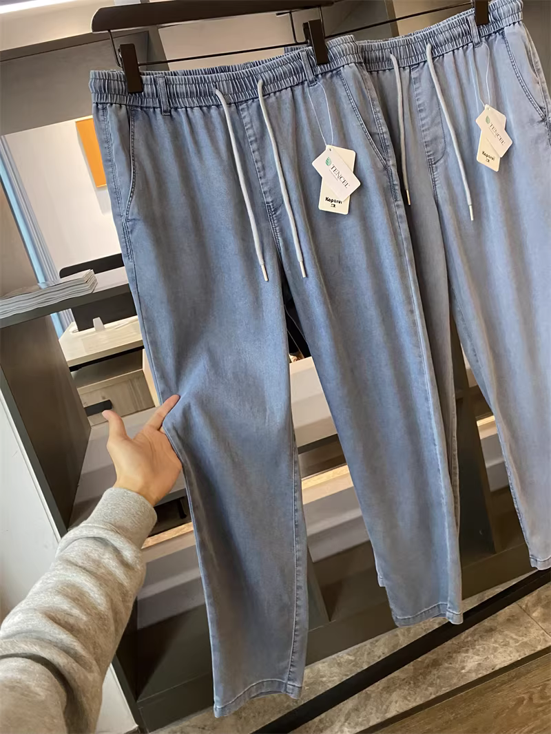 Don Quixote được sinh ra để mang lại sự thoải mái! Vải Tencel mang đến sự mát lạnh riêng của mình, quần jean Tencel đa năng và rộng rãi dành cho nam giới.