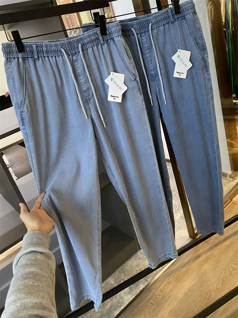 - Don Quixote được sinh ra để mang lại sự thoải mái! Vải Tencel mang đến sự mát lạnh riêng của mình, quần jean Tencel đa năng và rộng rãi dành cho nam giới.