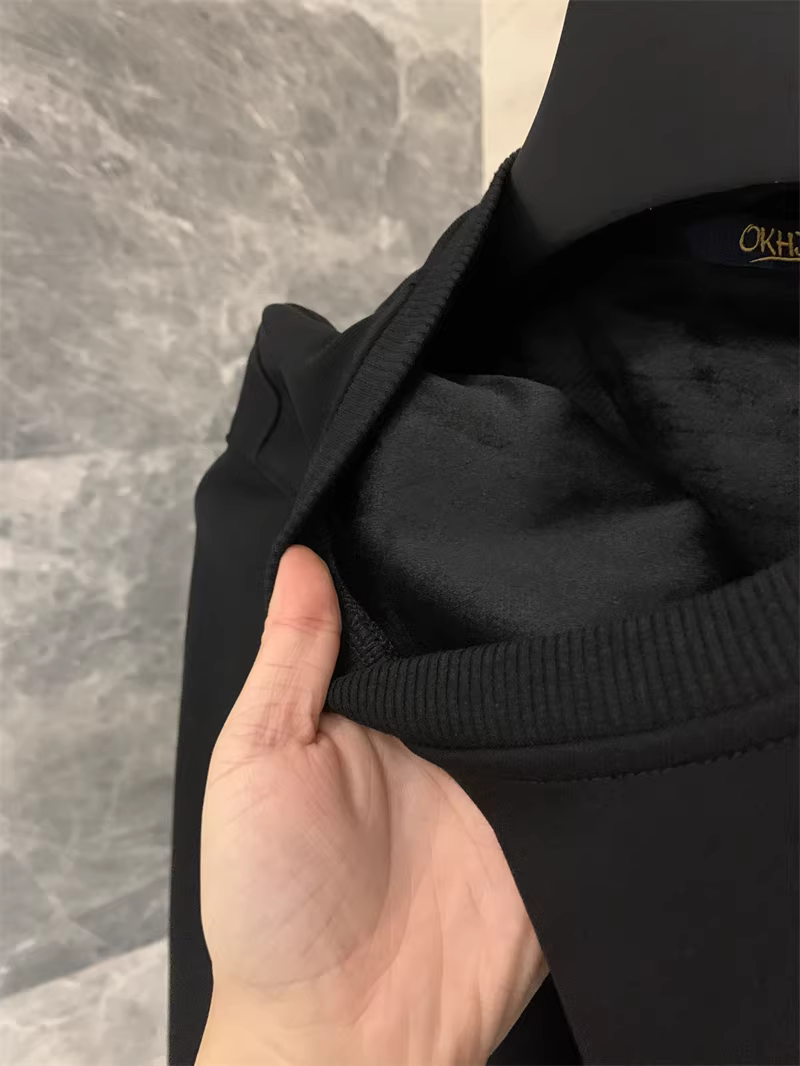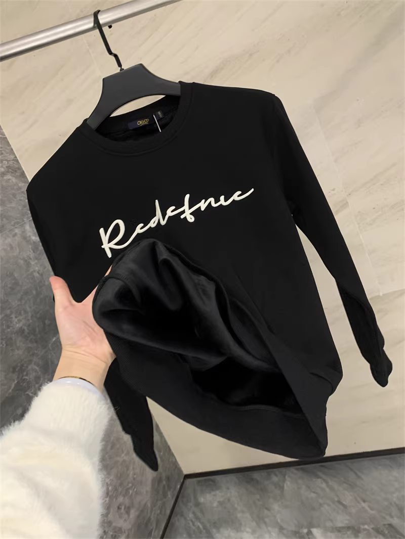 Don Quixote, được thêu nhiều màu sắc + lót lông cừu! Áo len dài tay cổ tròn đa năng dành cho nam mùa thu đông, hợp thời trang.