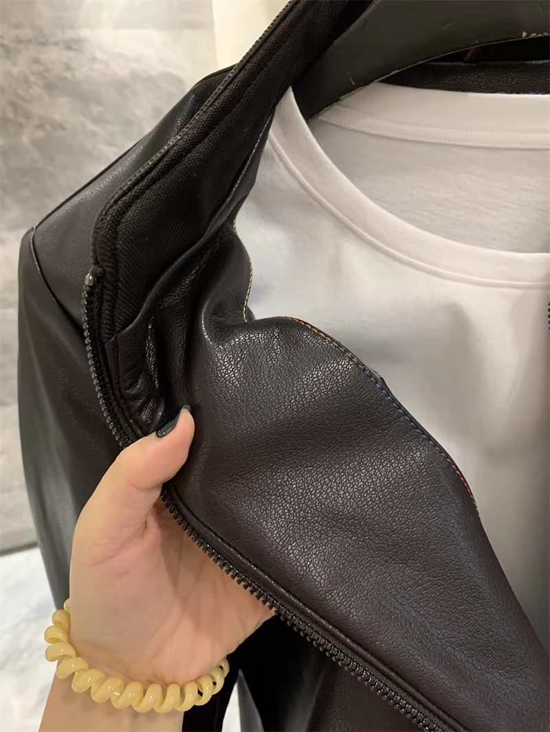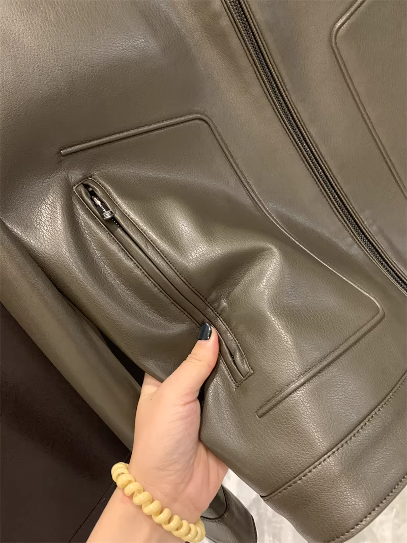 - Don Quixote Gao Duan Jingkou chất liệu da PU! Kiểu dáng thời trang và rộng rãi! Áo khoác da chức năng cổ đứng nhỏ gọn mùa thu dành cho nam.