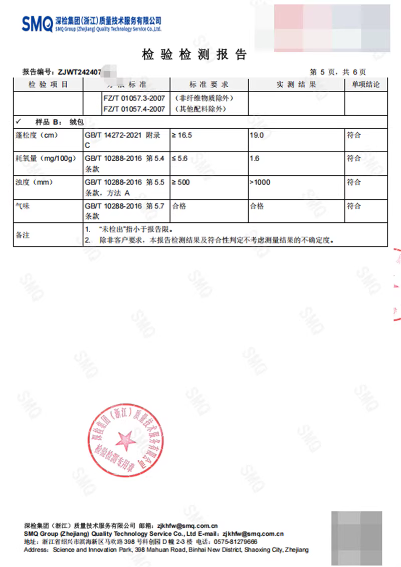 填充物:鹅绒(绒子含量85%)