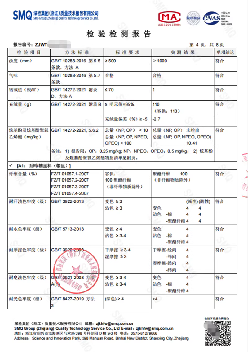 下层:100聚酯纤维(非纤维物质除外)